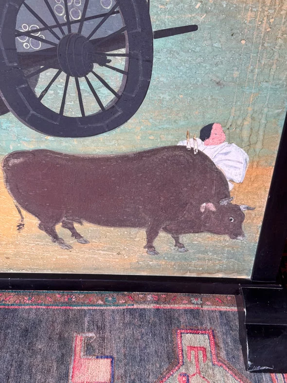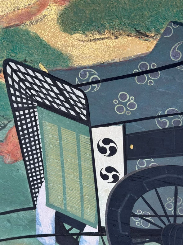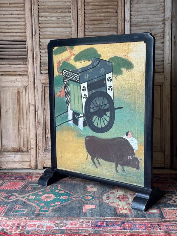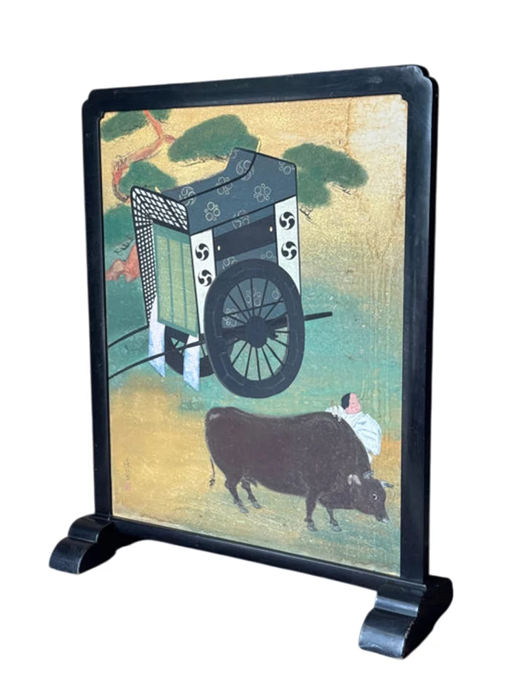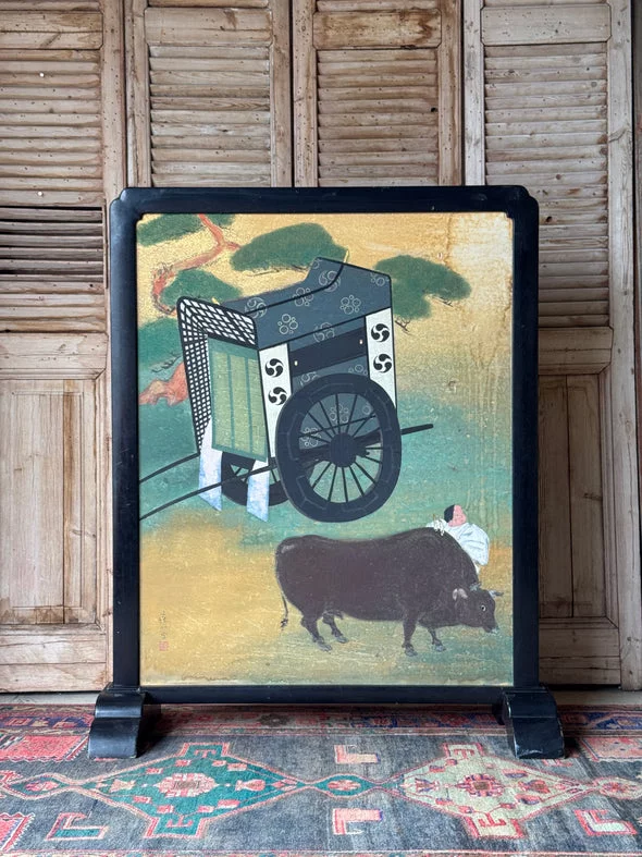 Pre-owned & Refurbished ANTIQUE - Japanese Screen Panel Depicting An Ox Drawn Gosho Guruma | Collecte