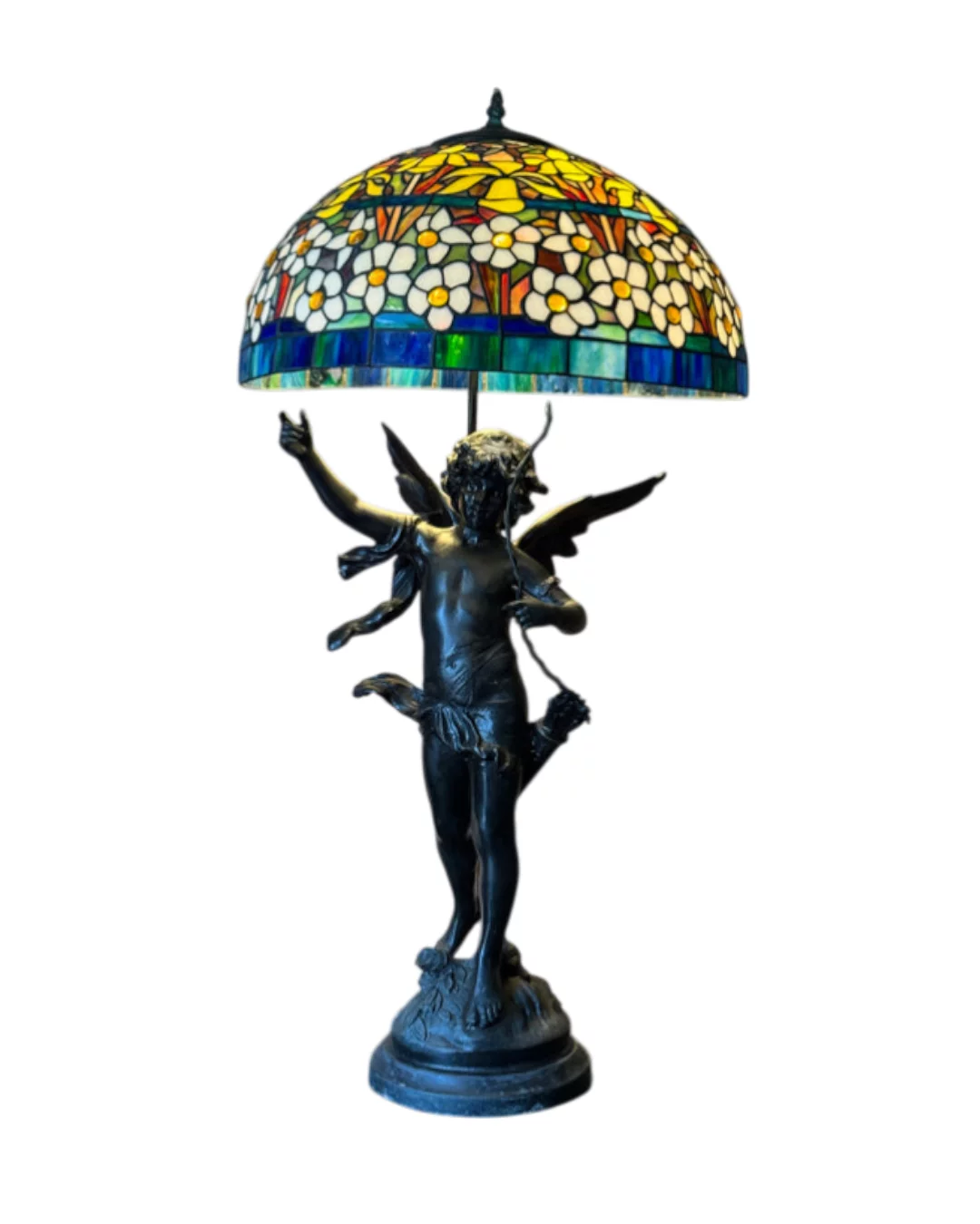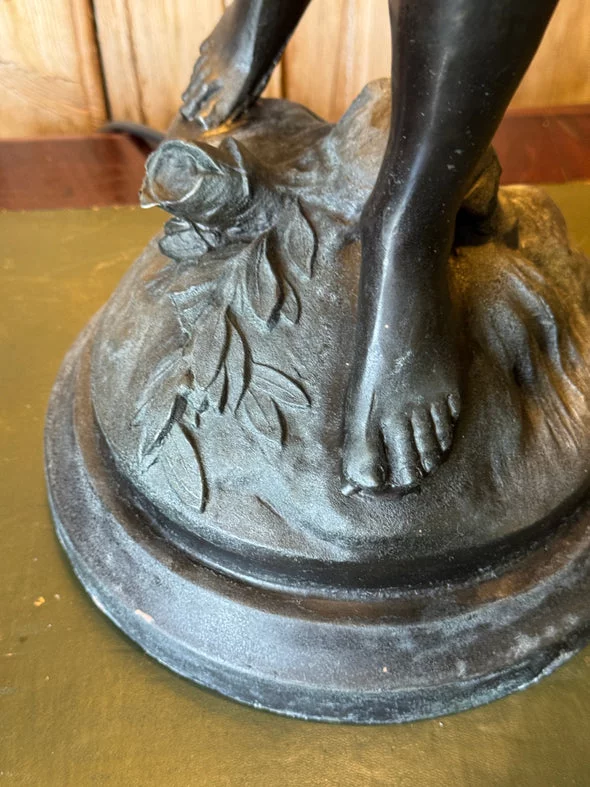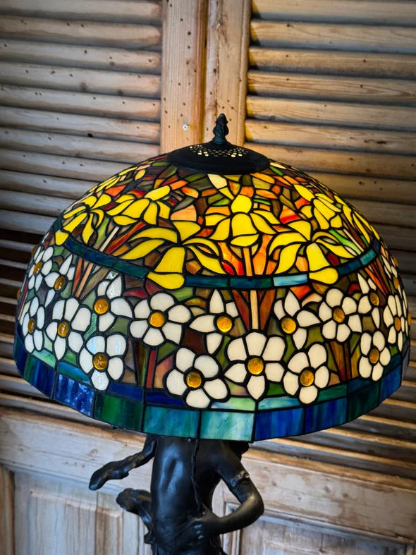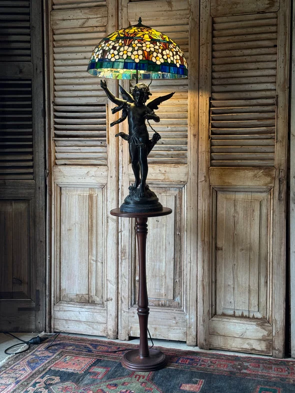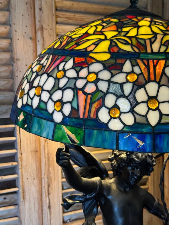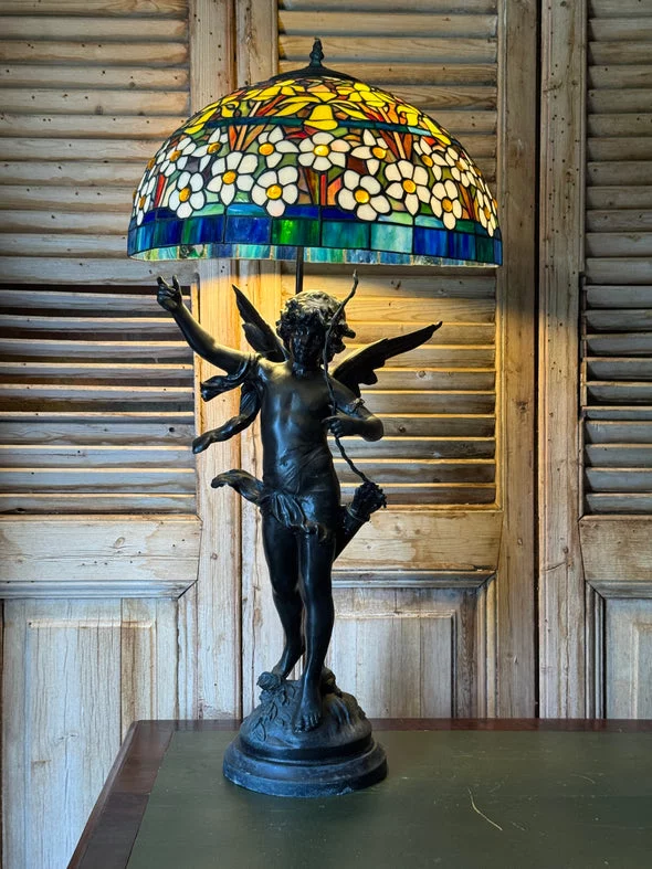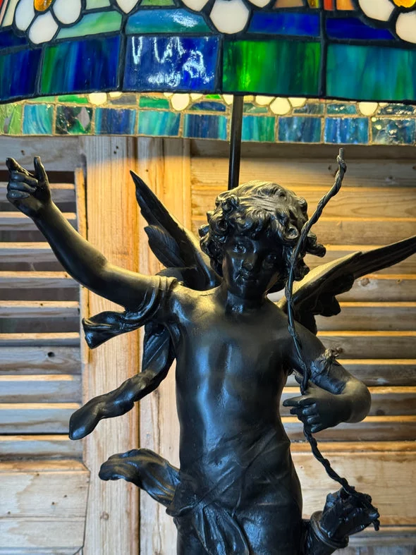 Pre-owned & Refurbished G MOREAU - Large French Figural Lamp With Tiffany Style Stained Glass Shade | Collecte