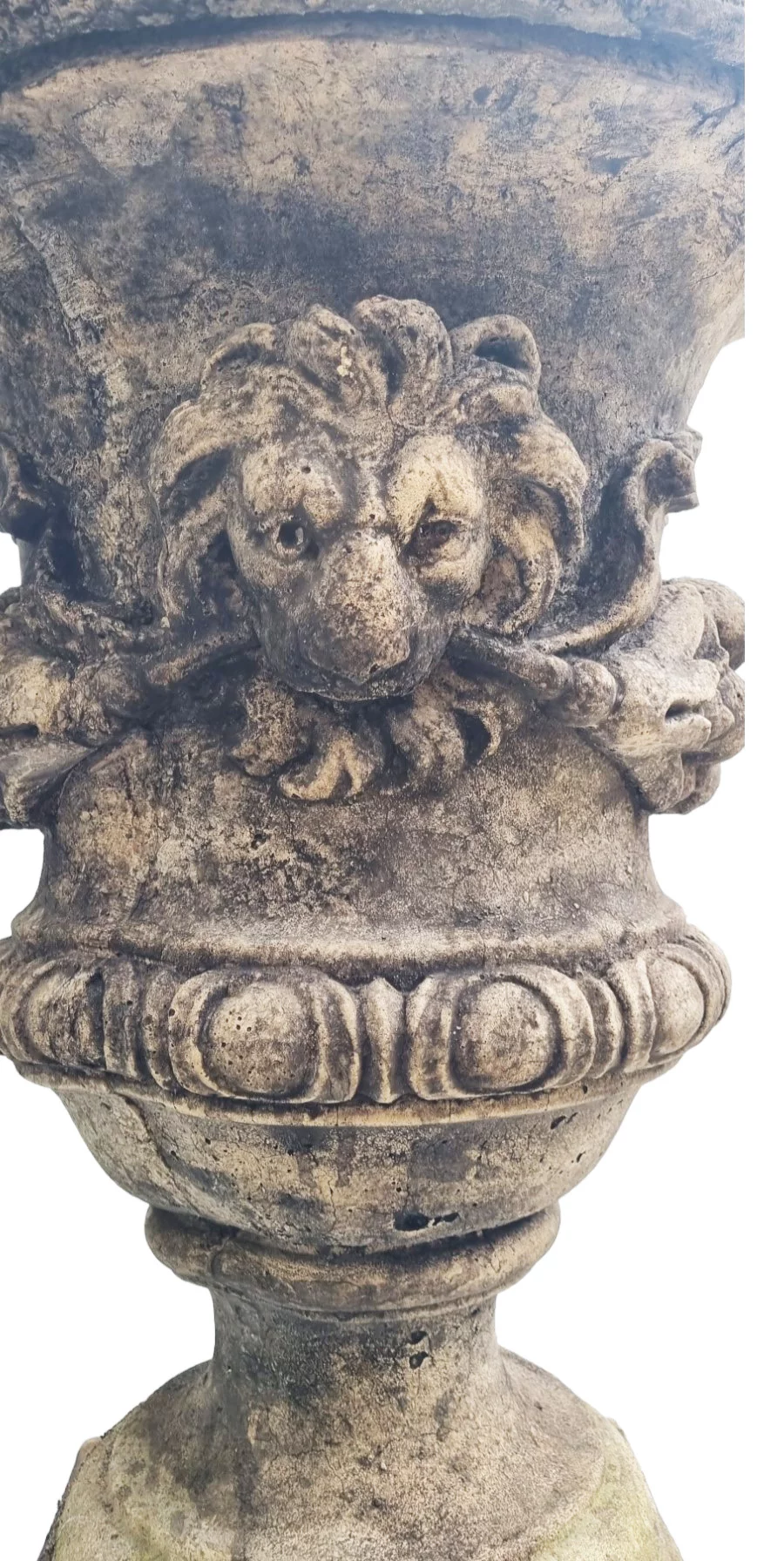 Pre-owned & Refurbished ANTIQUE - Large Lion Head Renaissance Style Garden Urn Pot | Collecte