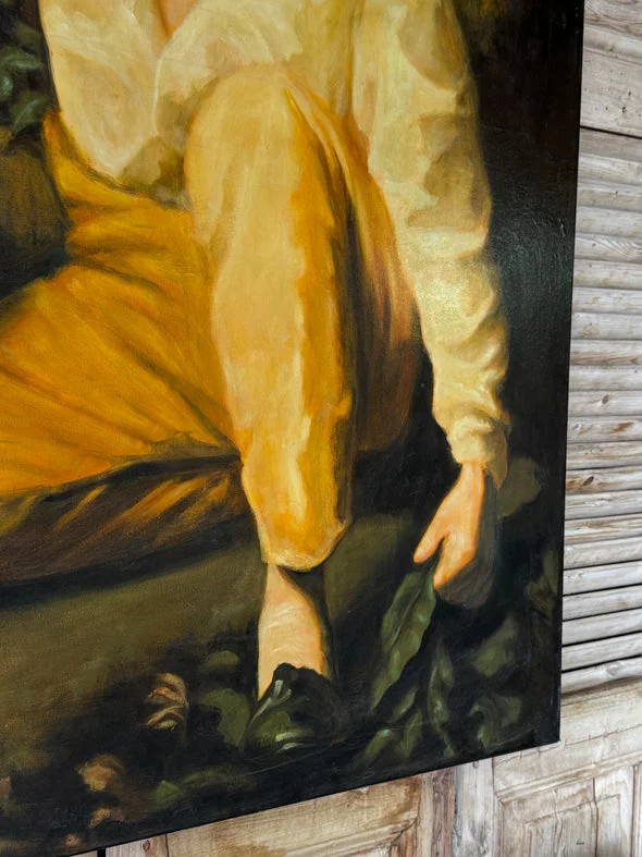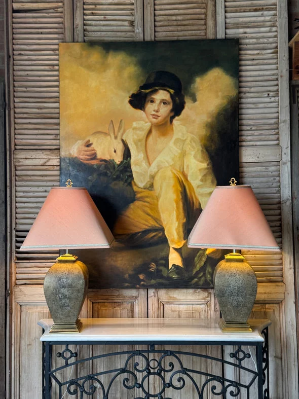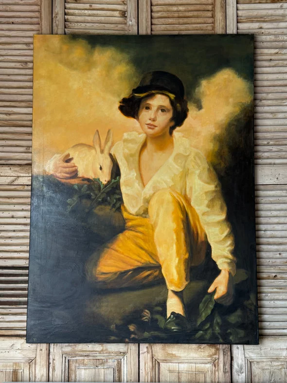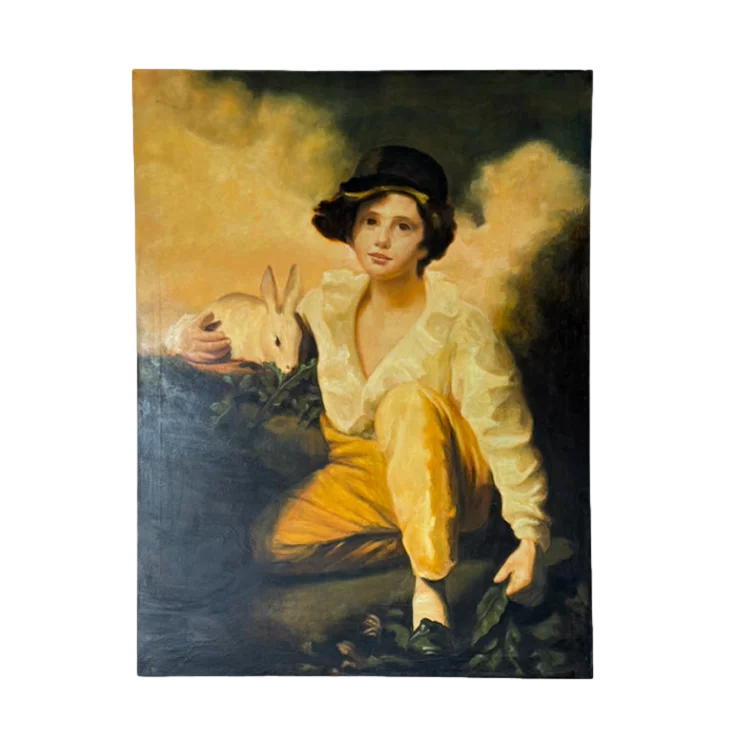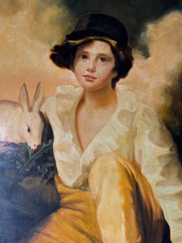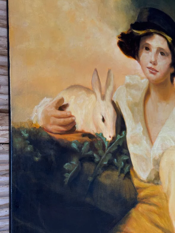Pre-owned & Refurbished VINTAGE - Large Oil Portrait of Seated Figure with Rabbit | Collecte