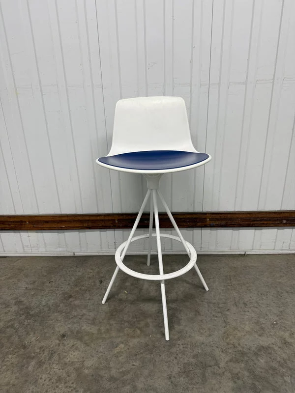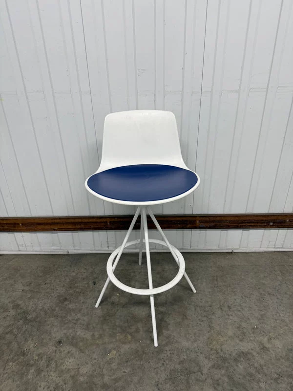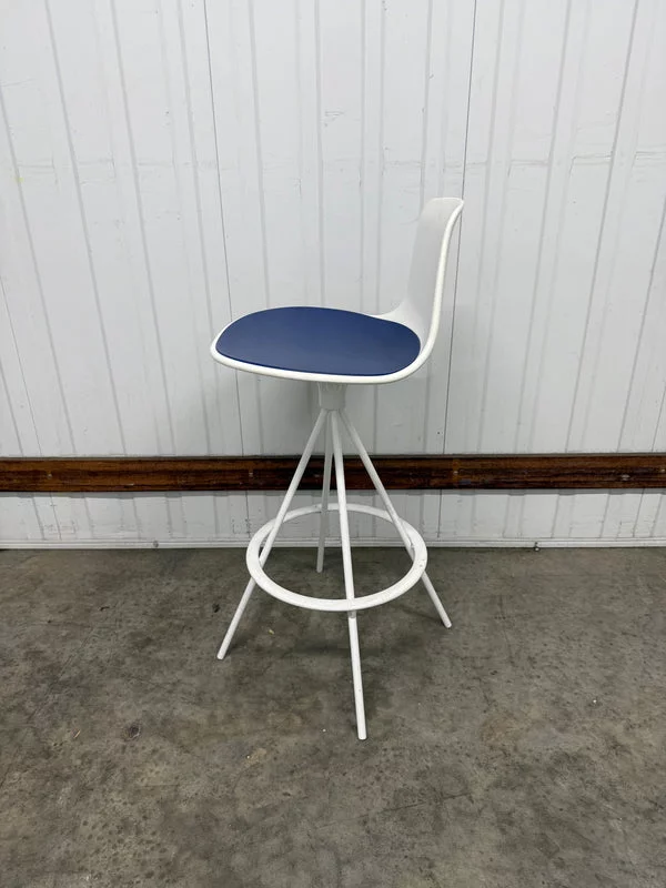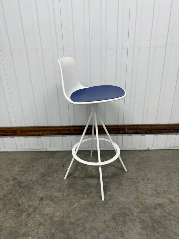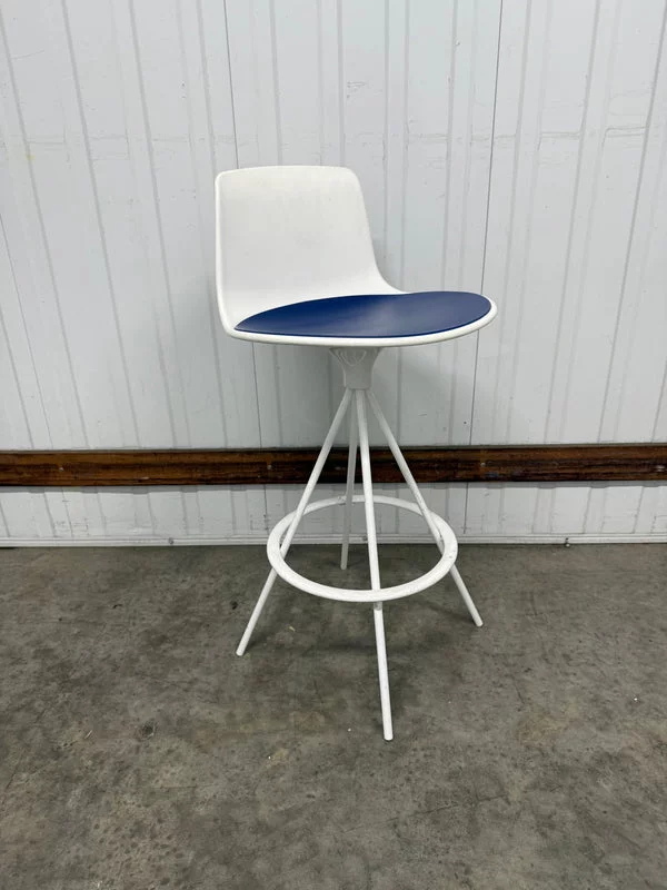 Pre-owned & Refurbished ENEA - Lottus Barstool White with Blue Seat Pad | Collecte