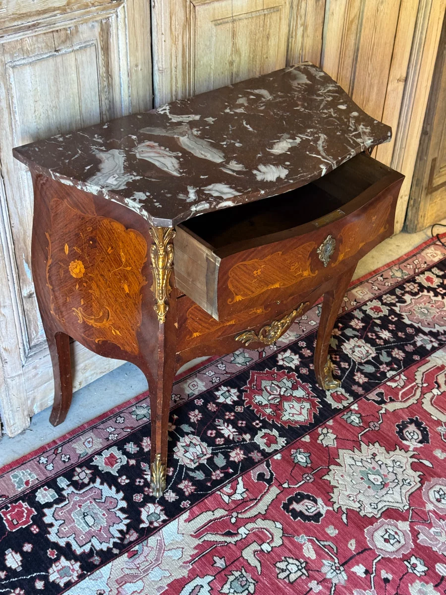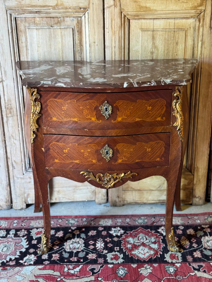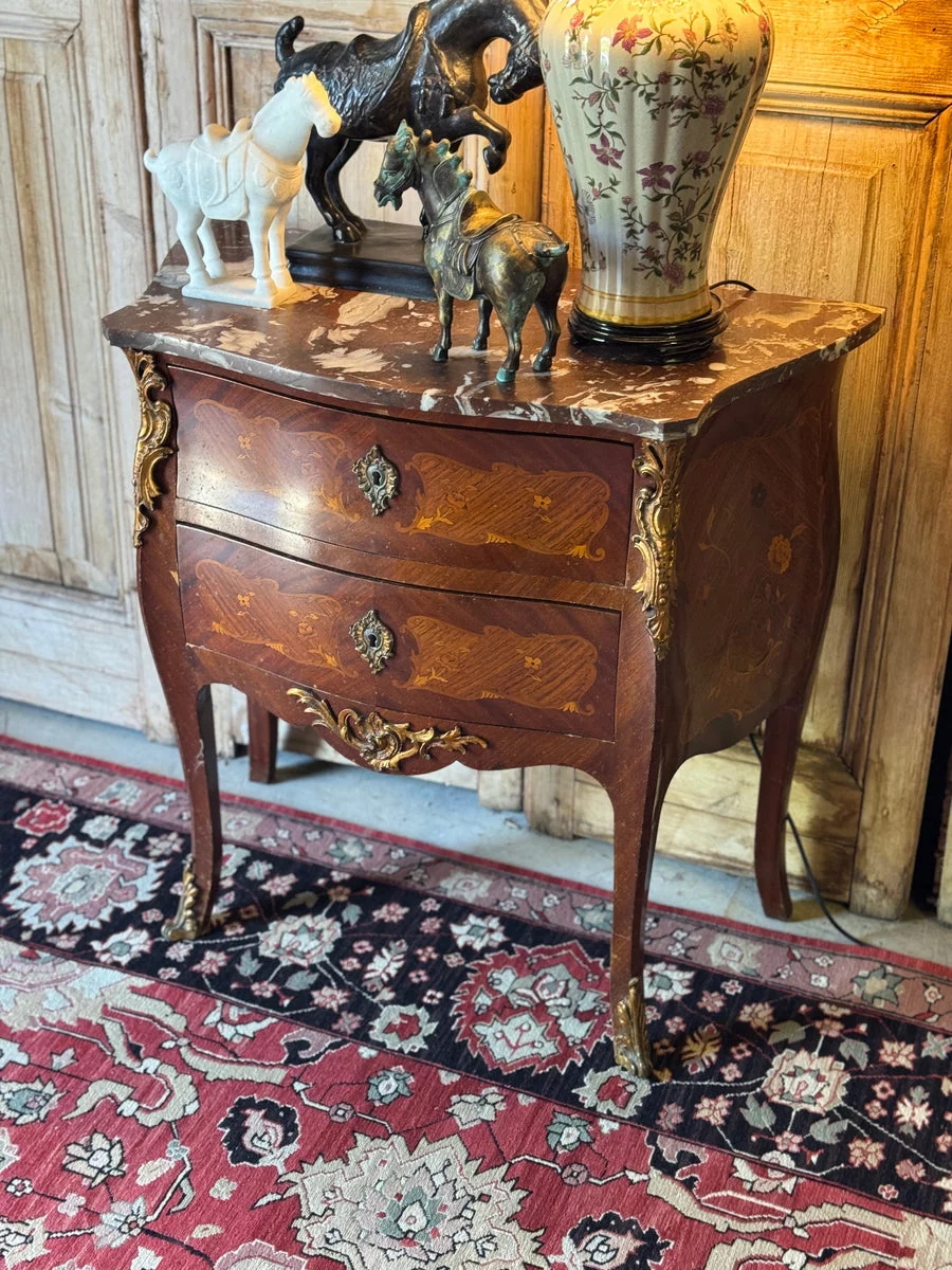 Pre-owned & Refurbished VINTAGE - Louis Style Marble Top Commode with Marquetry Detail and Ormolu Mounts | Collecte