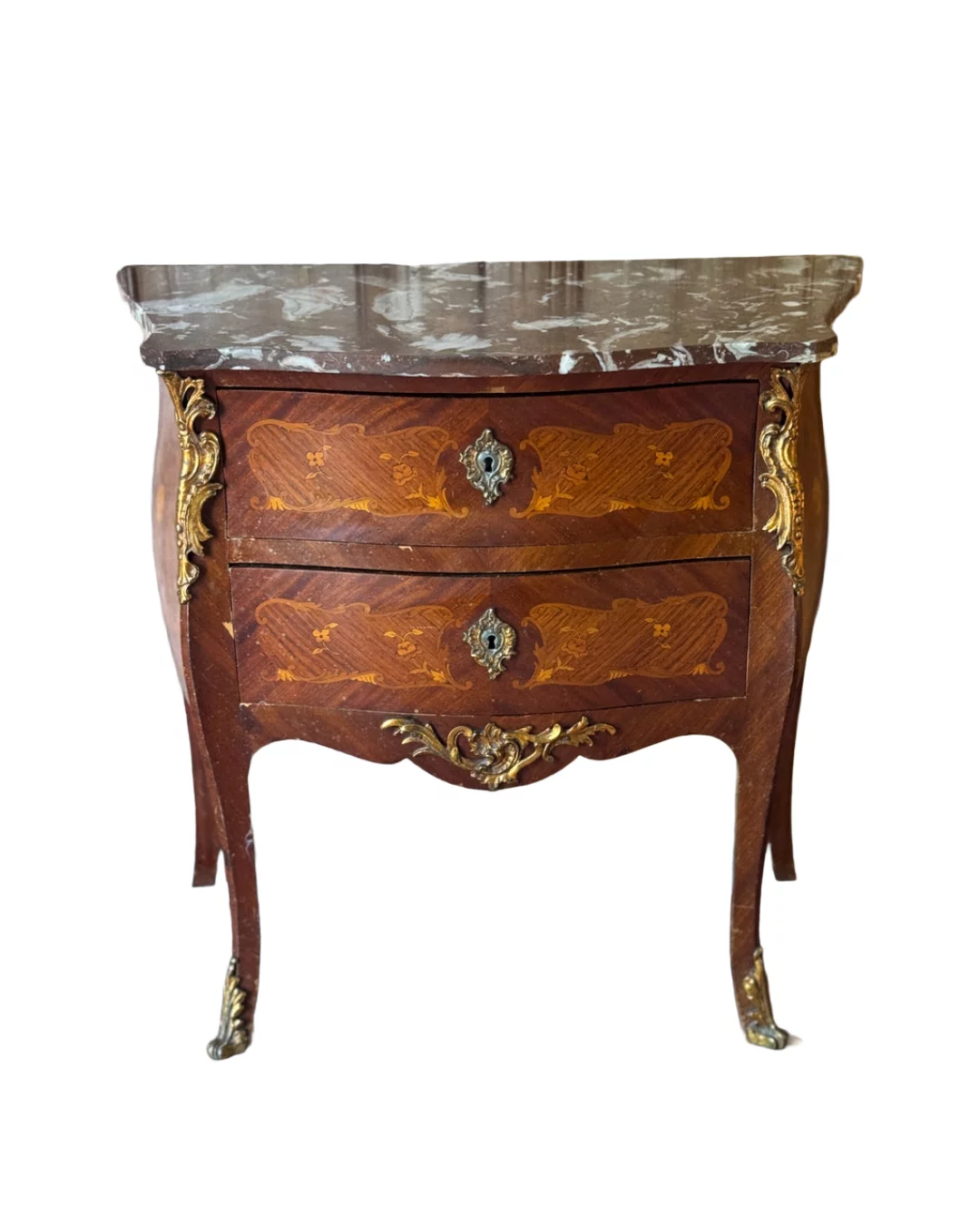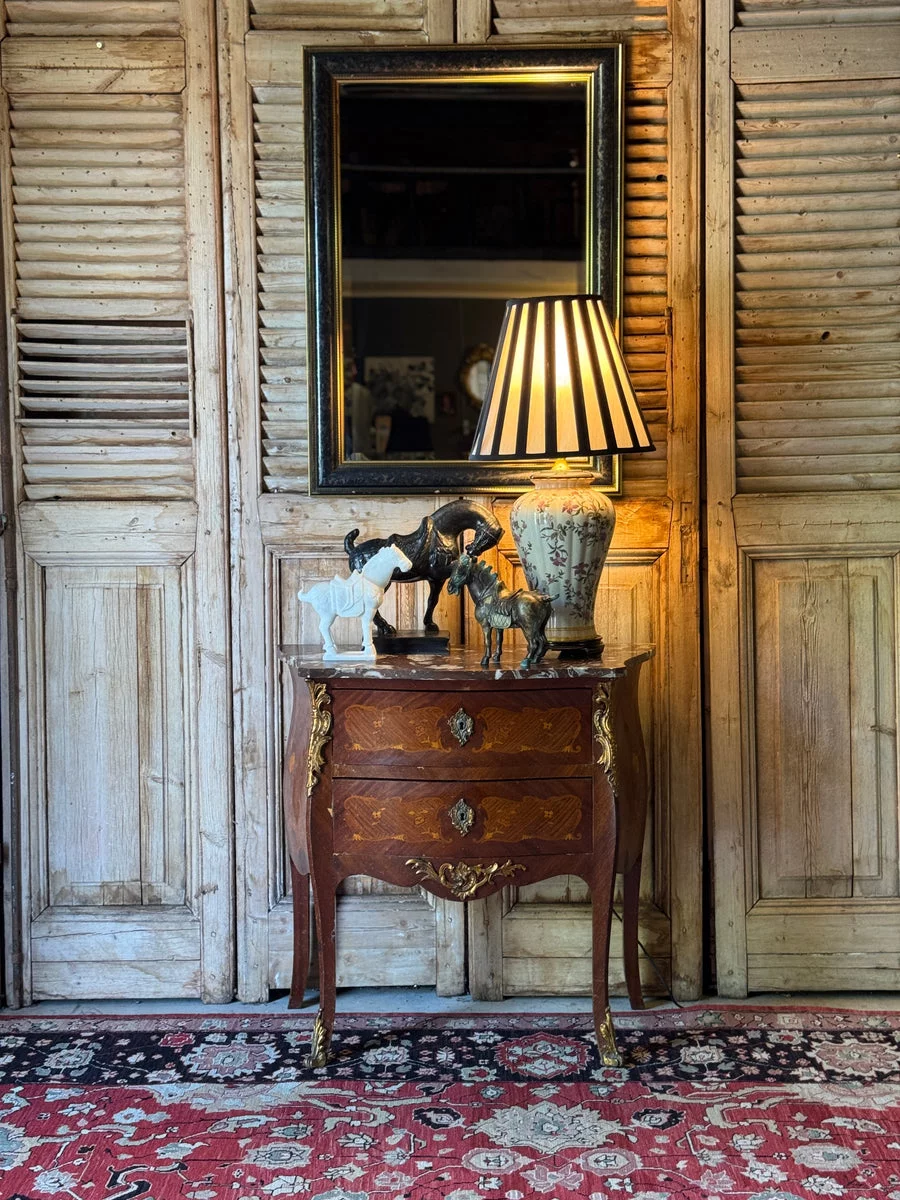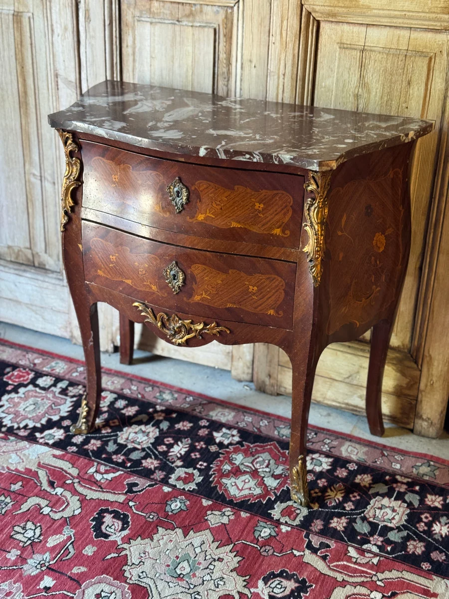 Pre-owned & Refurbished VINTAGE - Louis Style Marble Top Commode with Marquetry Detail and Ormolu Mounts | Collecte
