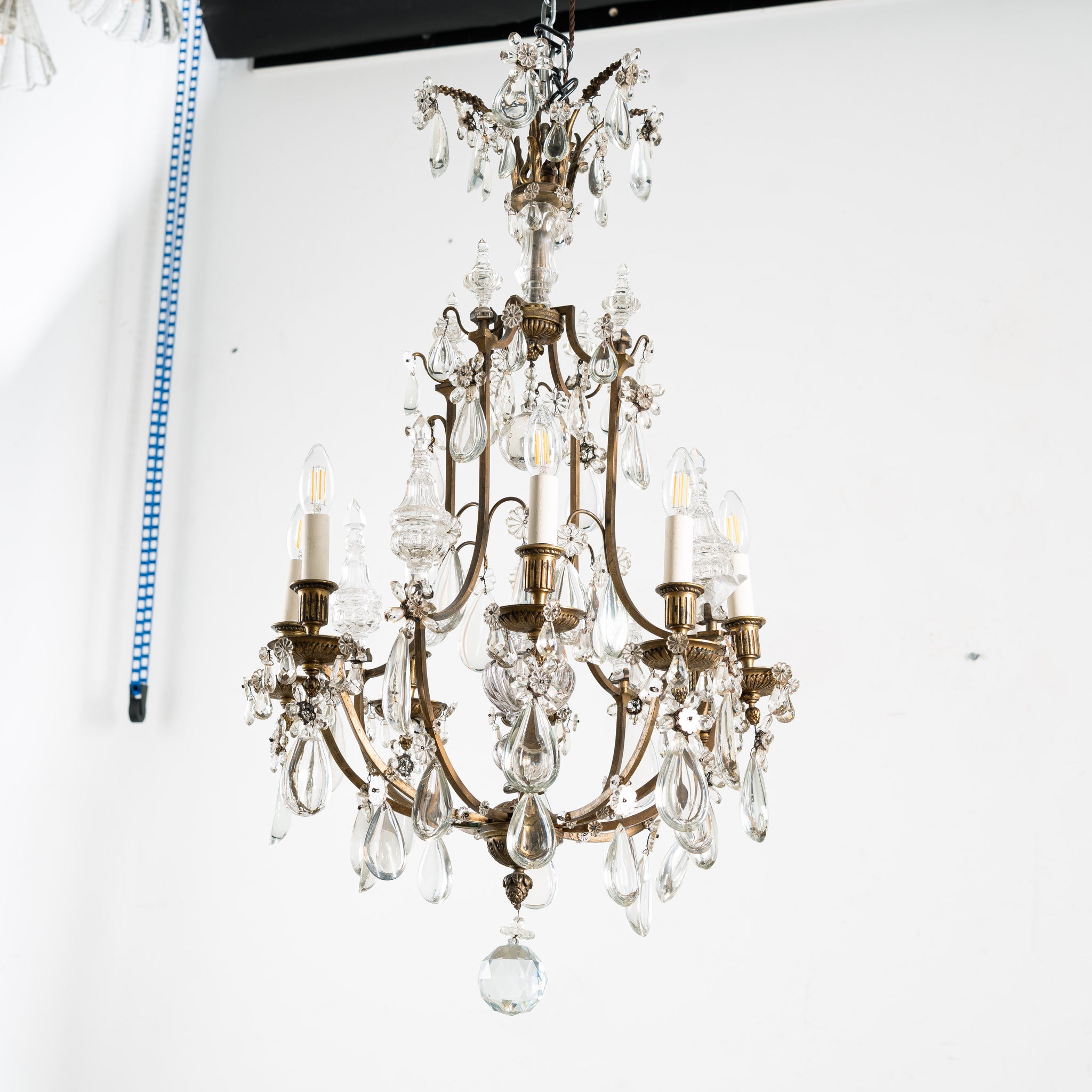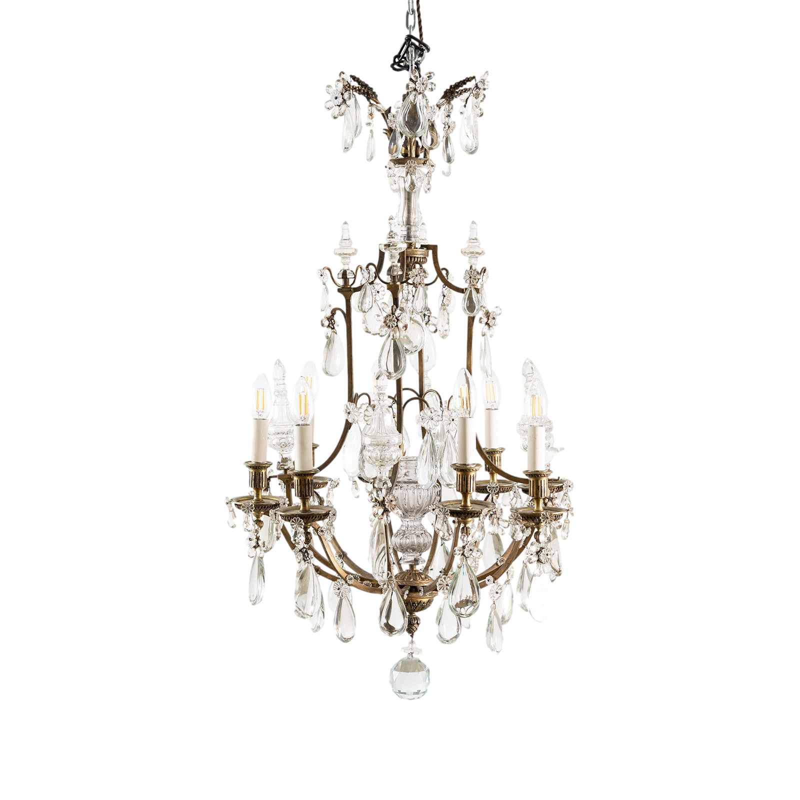 Pre-owned & Refurbished ANTIQUE - Louis XV Style Chandelier With a Gilded Cage and Crystal Drops | Collecte