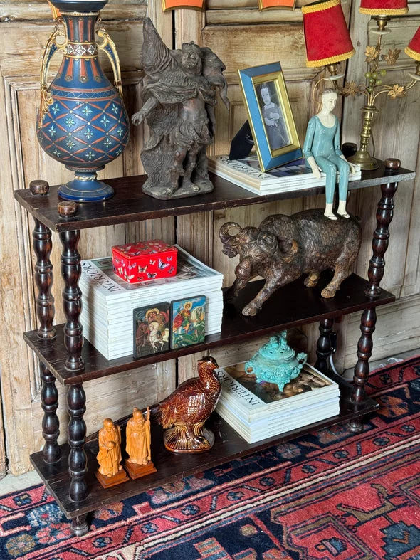 Pre-owned & Refurbished ANTIQUE - Mahogany Three Tier Shelf with Turned Supports | Collecte