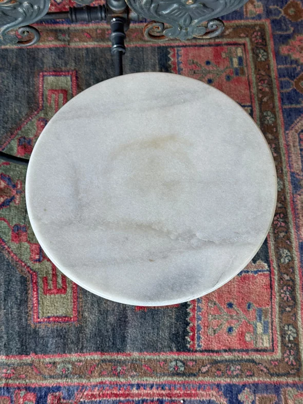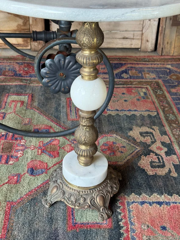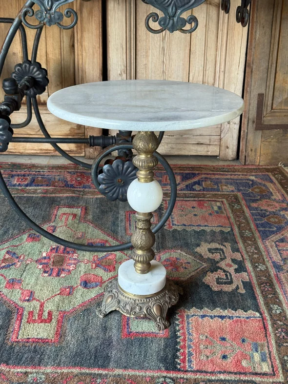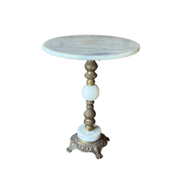 Pre-owned & Refurbished VINTAGE - Marble Top Side Table with Brass And Stone Detailing | Collecte