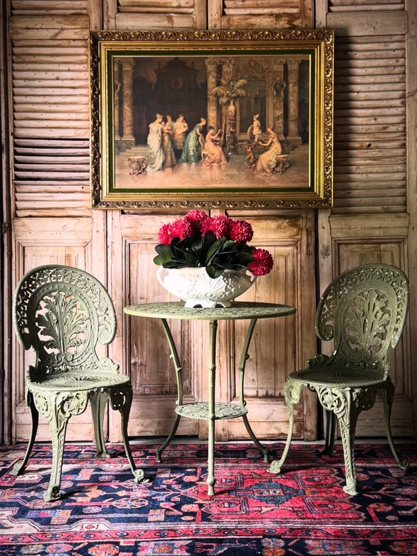 Pre-owned & Refurbished VINTAGE - Metal Garden Bistro Set with Ivy Pattern | Collecte