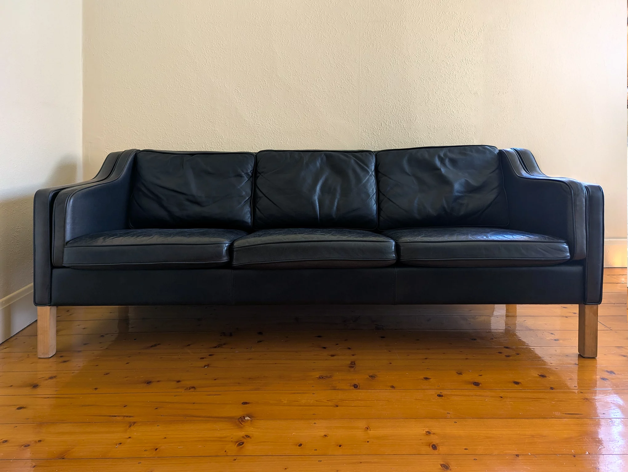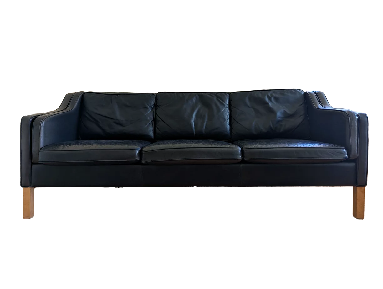 Pre-owned & Refurbished MID CENTURY - Danish Black Leather 3-Seater Sofa | Collecte
