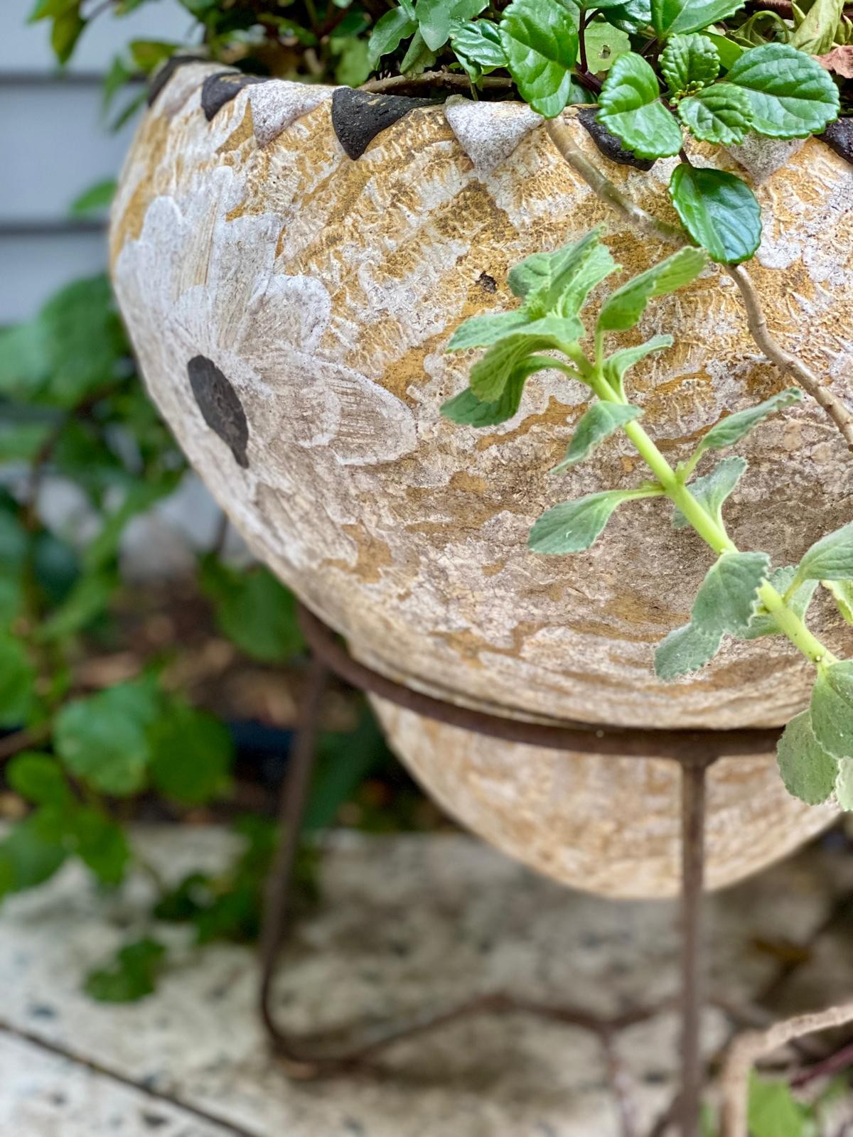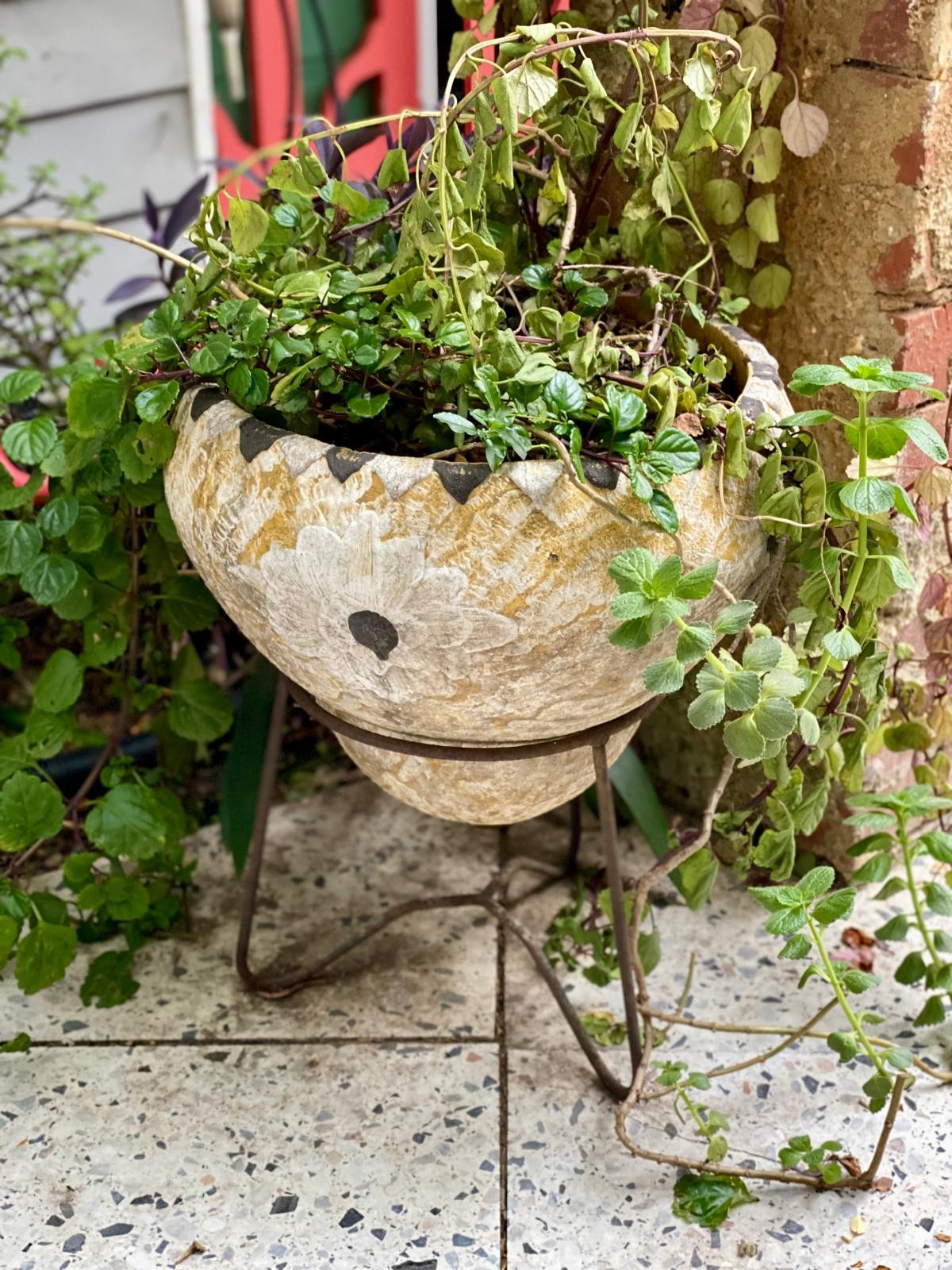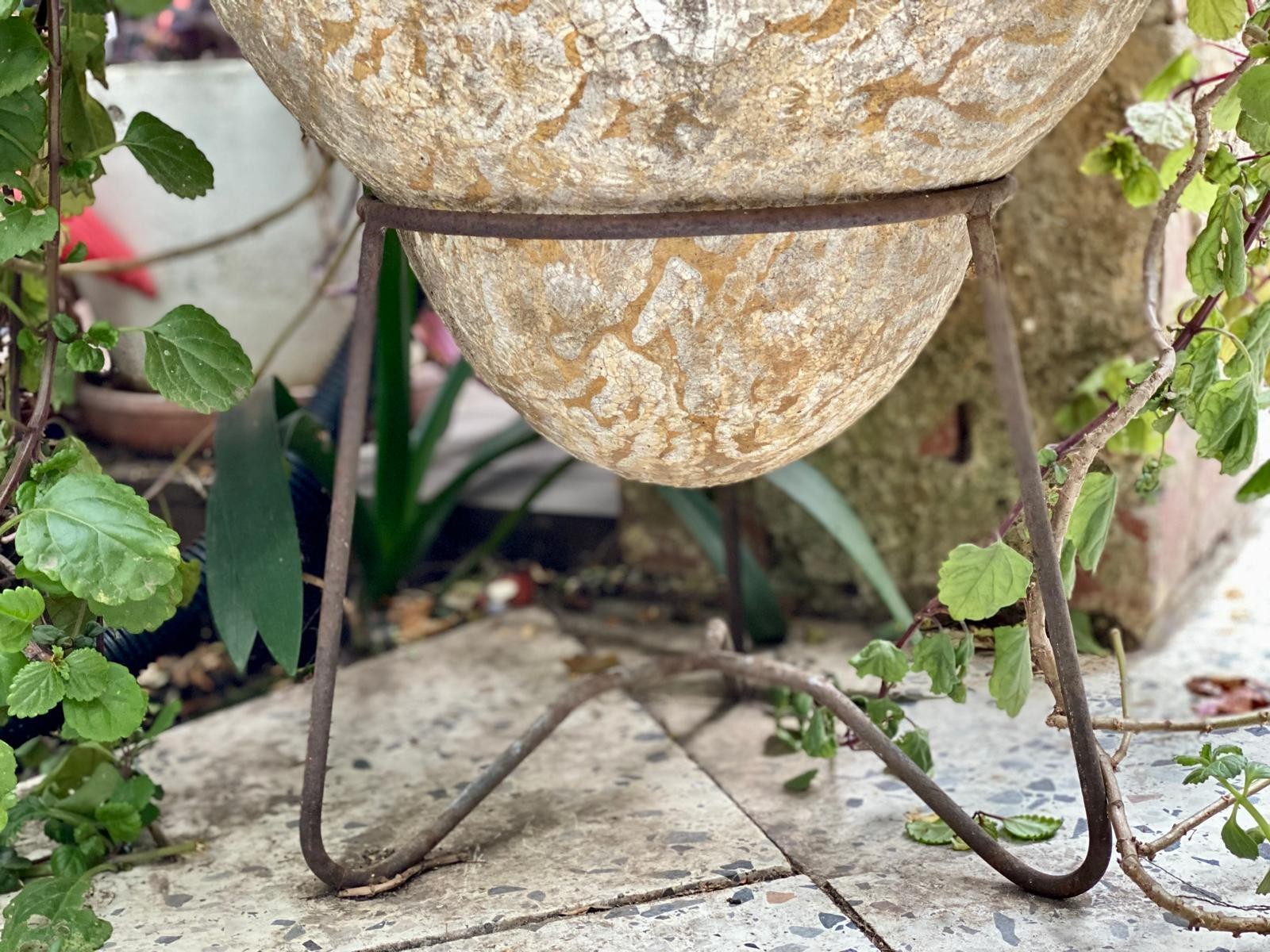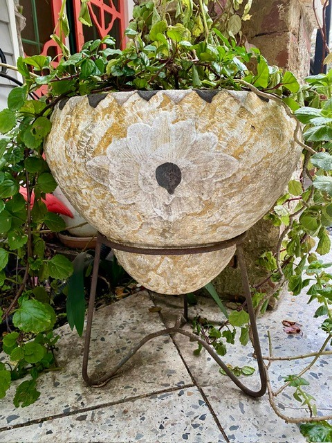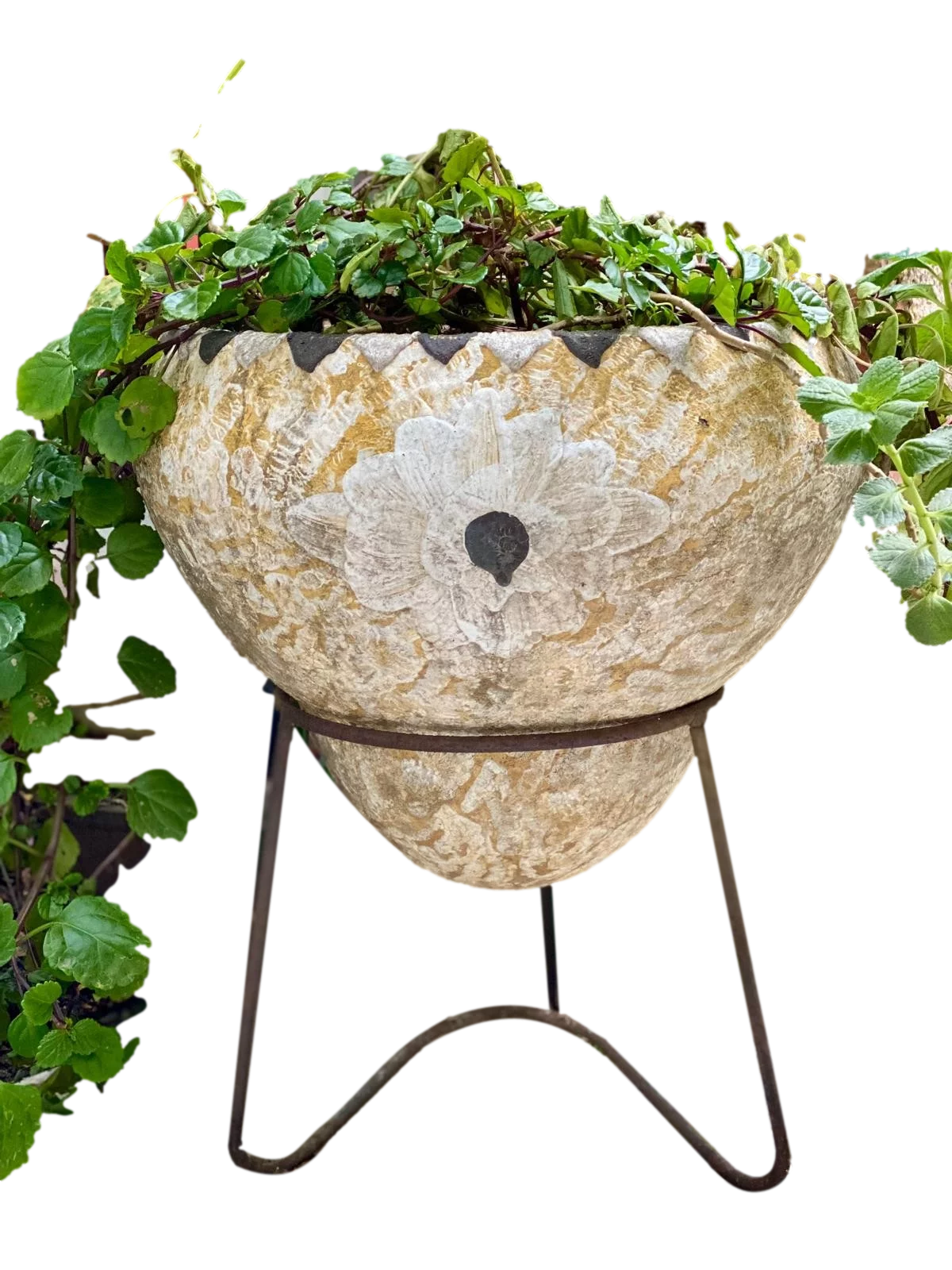 Pre-owned & Refurbished MID CENTURY - Flower Cone Cement Plant Pot and Stand | Collecte