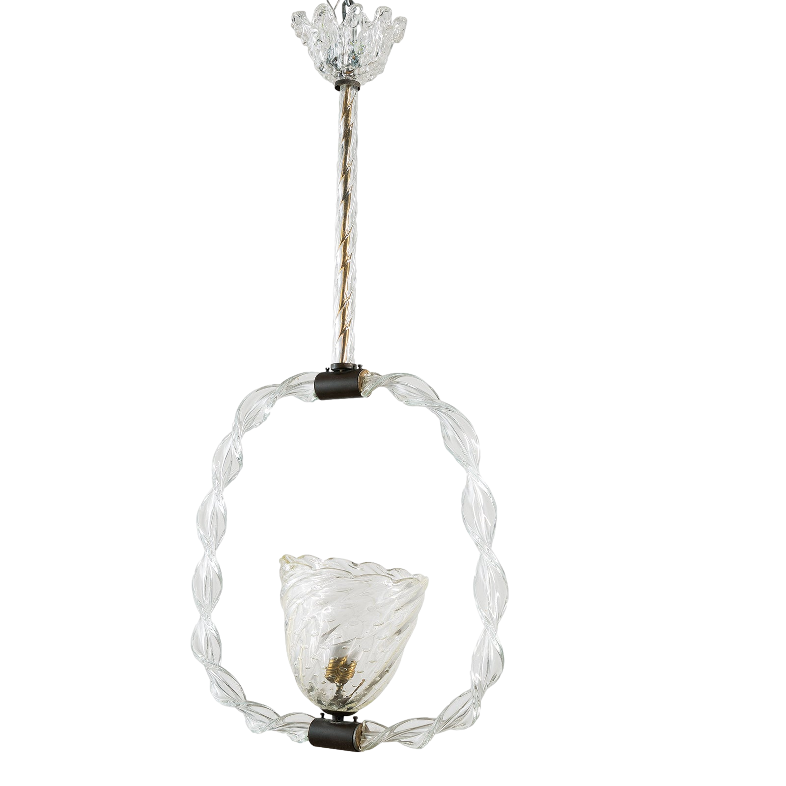 Pre-owned & Refurbished BAROVIER & TOSO - Mid Century Murano Glass and Brass Pendant | Collecte