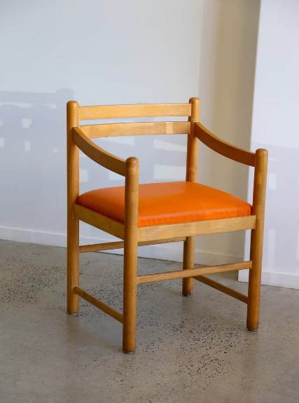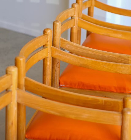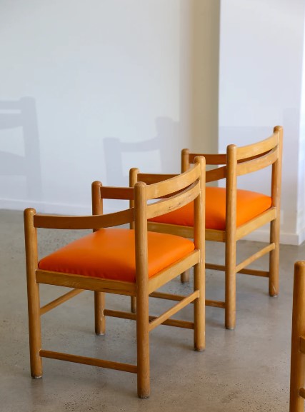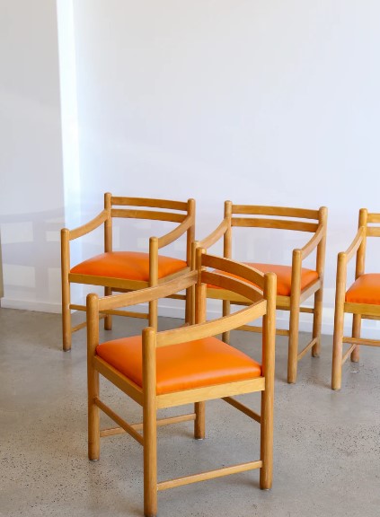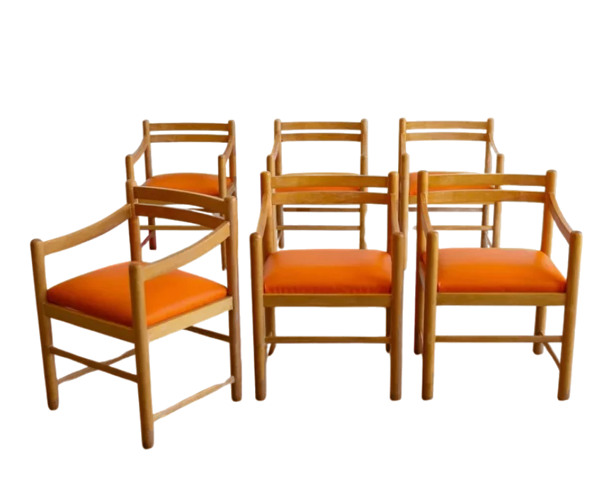 Pre-owned & Refurbished MID CENTURY - Set of Six Rosewood and Orange Leather Dining Chairs | Collecte