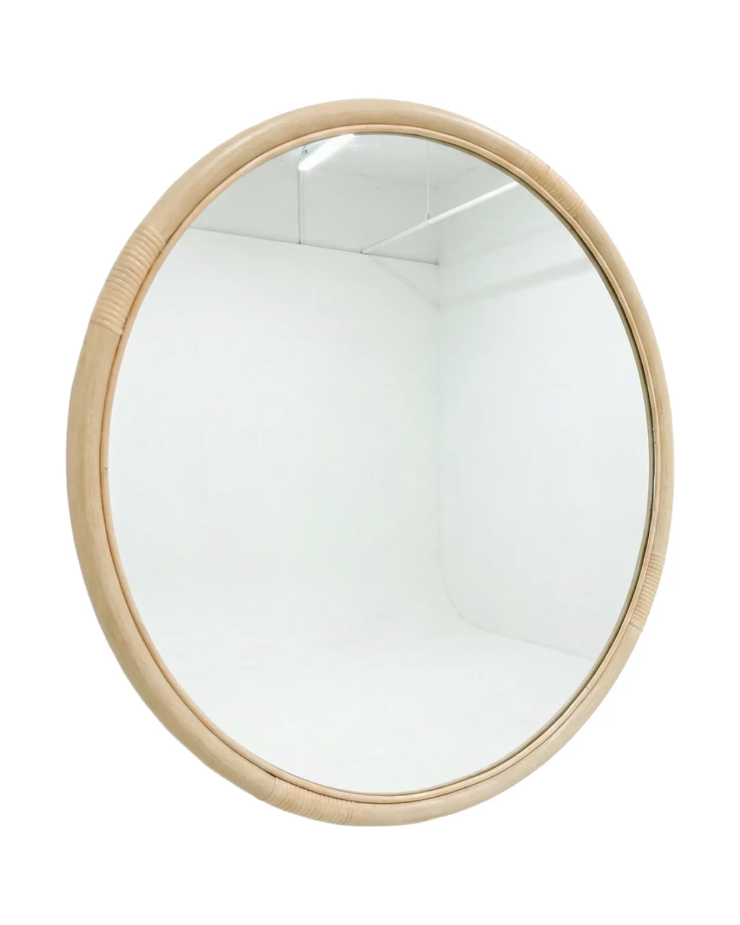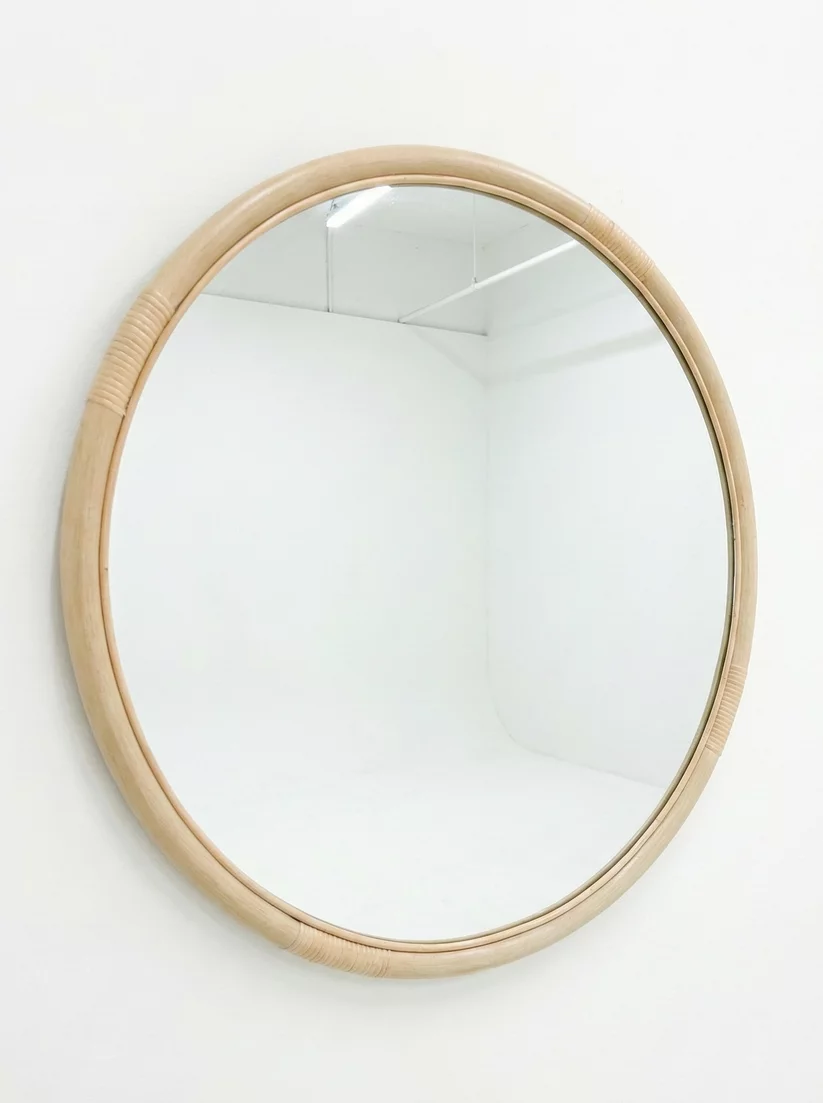 Pre-owned & Refurbished MID CENTURY - Mid Century Vintage Cane Round Cream Mirror | Collecte