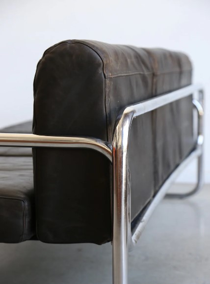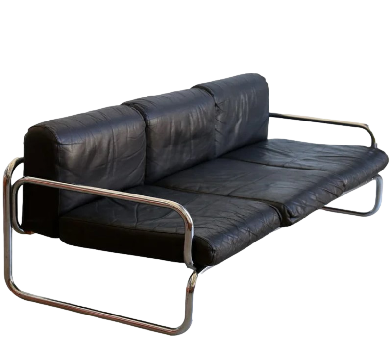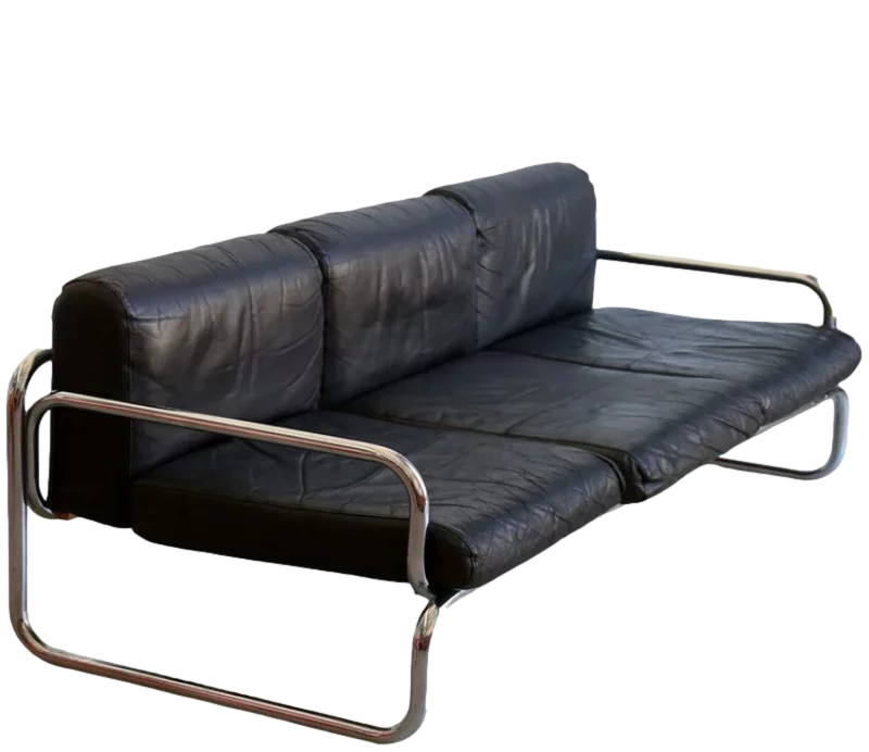 Pre-owned & Refurbished OMK - Three seater Black Leather Sofa by Rodney Kinsman | Collecte