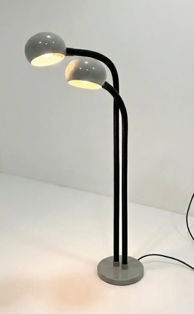 Pre-owned & Refurbished OSLO - 1970s Grey and Black Flexible Twin Head Floor Lamp | Collecte