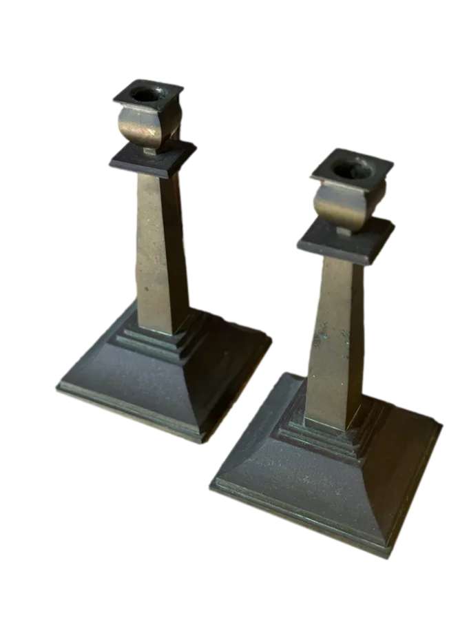 Pre-owned & Refurbished VINTAGE - Pair of Brass Obelisk Candlesticks | Collecte