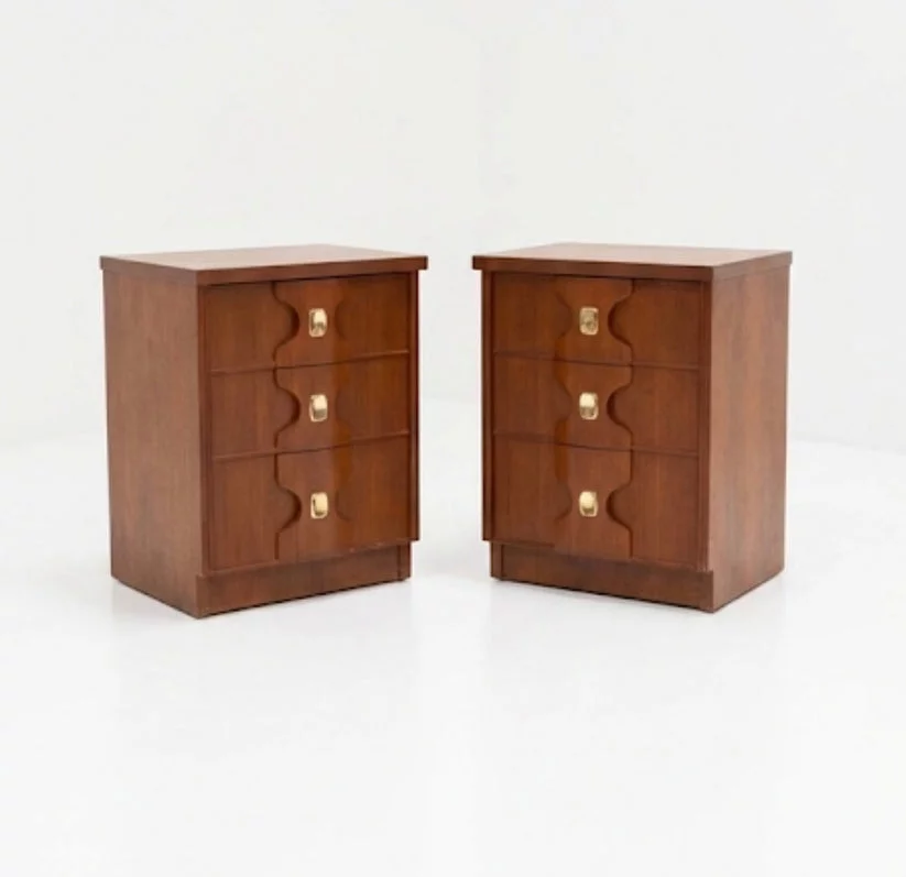 Pre-owned & Refurbished BURGESS - Pair of Teak Gold Bedside Tables 1970s | Collecte