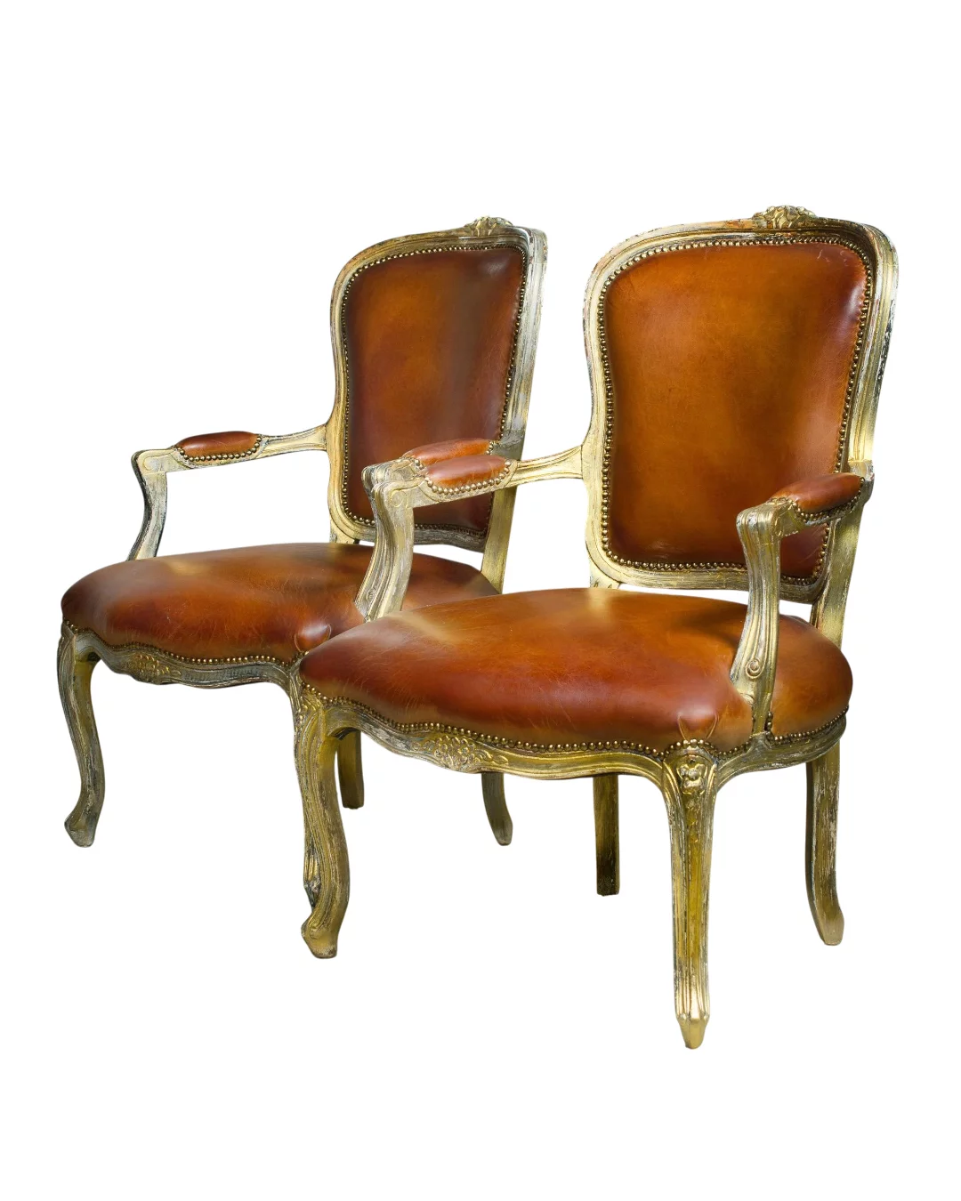 Pre-owned & Refurbished ANTIQUE - Pair of Early French Leather Armchairs | Collecte
