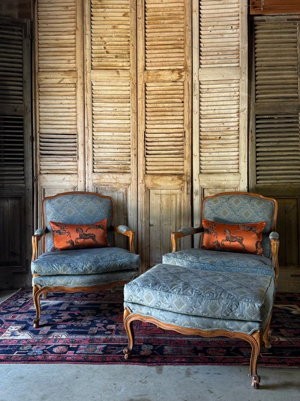 Pre-owned & Refurbished VINTAGE - Pair of French Bergere Armchairs with Ottoman | Collecte