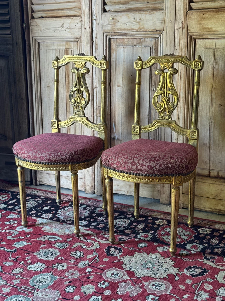 Pre-owned & Refurbished VINTAGE - Pair of French Louis XVI Style Giltwood Salon Chairs | Collecte