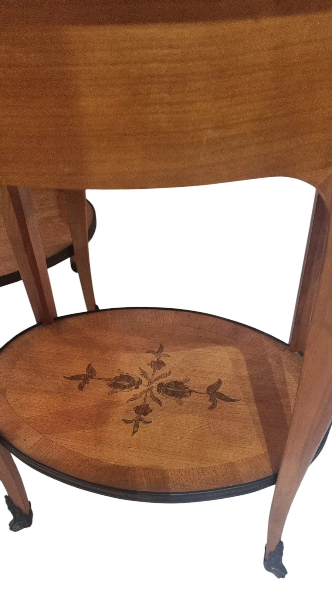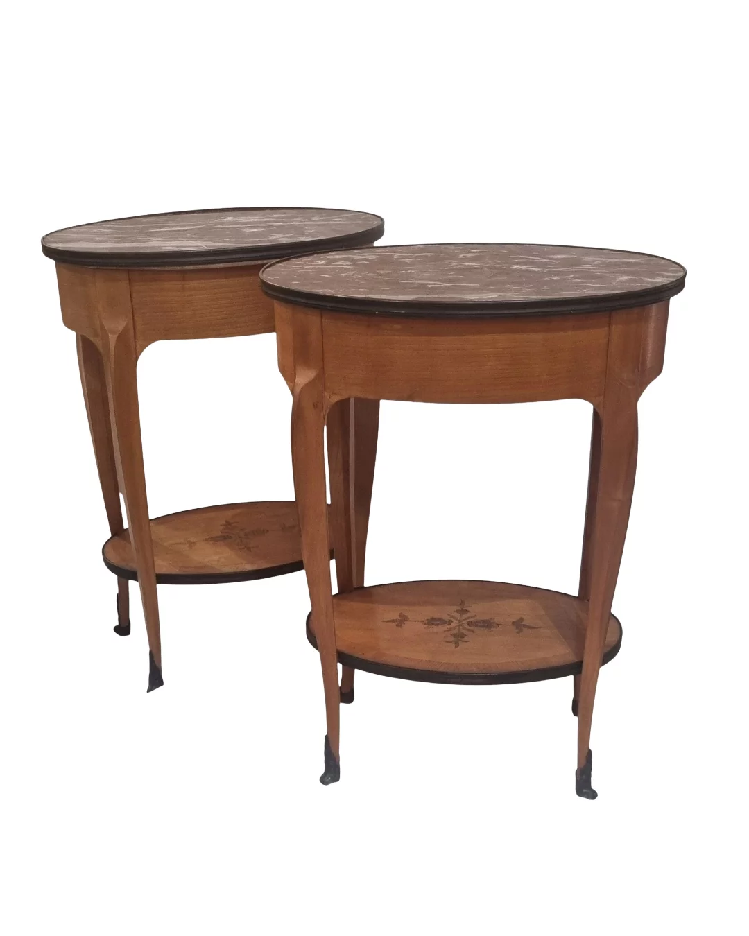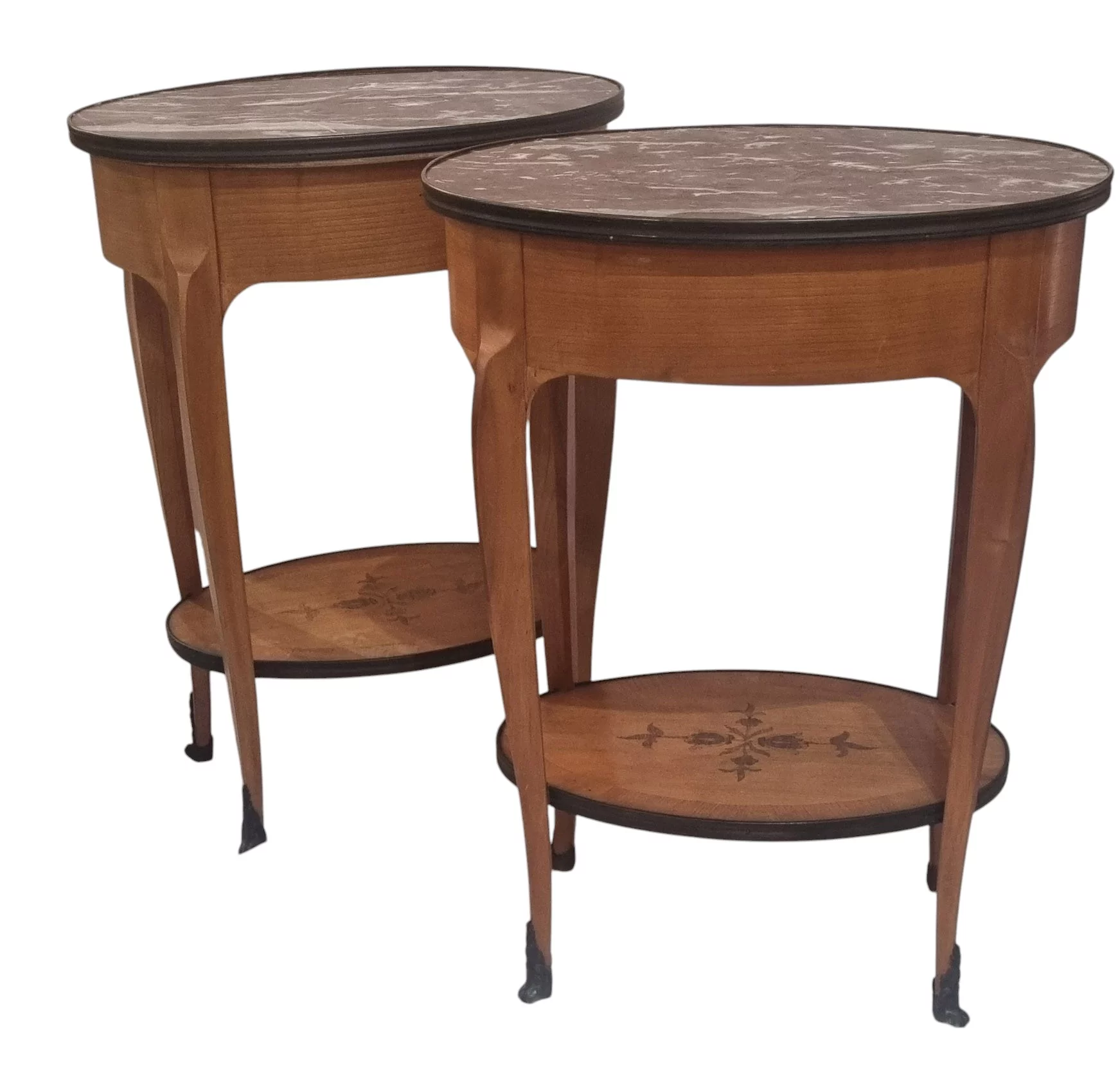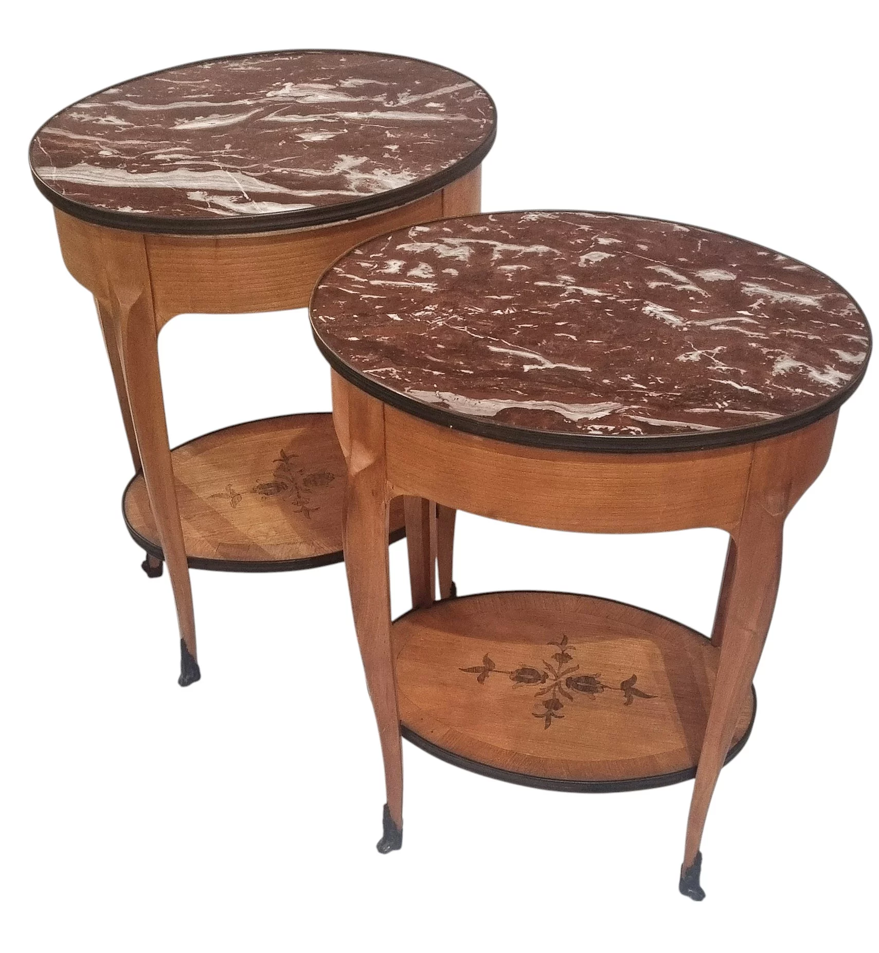 Pre-owned & Refurbished ANTIQUE - Pair of French Marble Top Cherrywood Bed Side Tables | Collecte