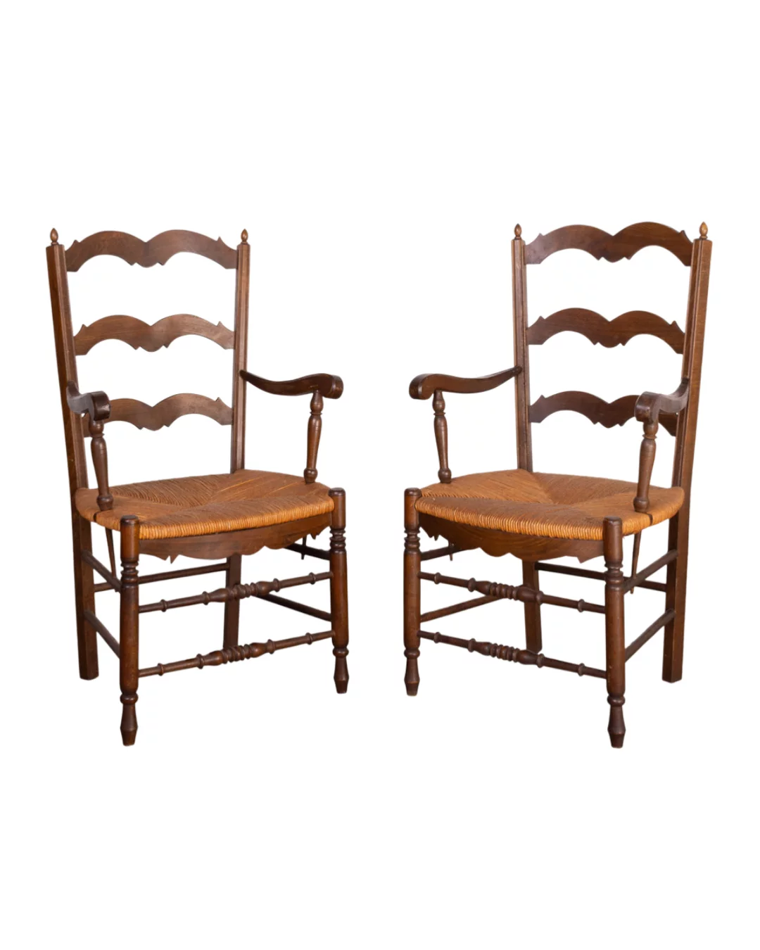 Pre-owned & Refurbished ANTIQUE - Pair of French Wicker Ladder Back Armchairs | Collecte