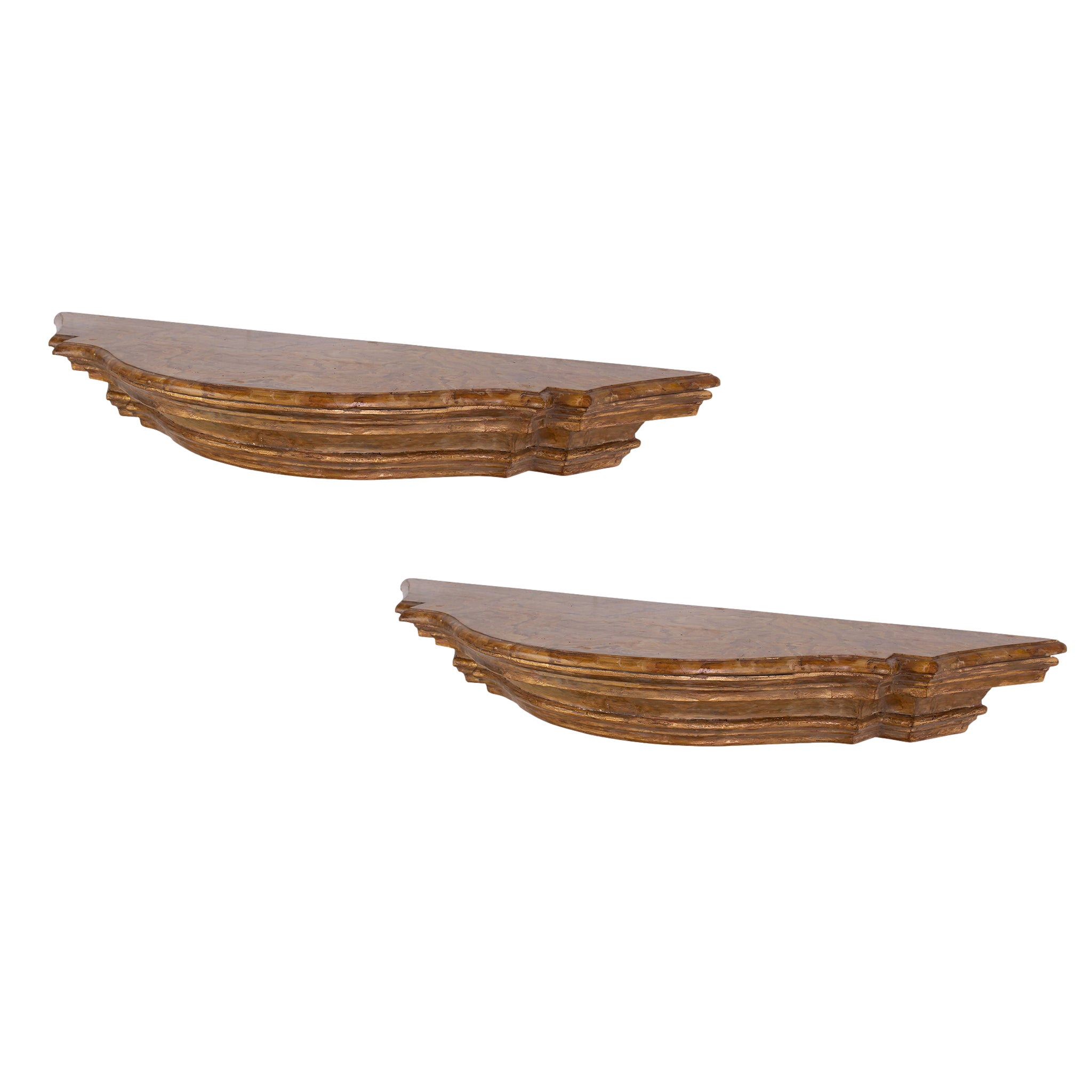 Pre-owned & Refurbished MID CENTURY - Pair of Italian Faux Marble Wall Consoles | Collecte