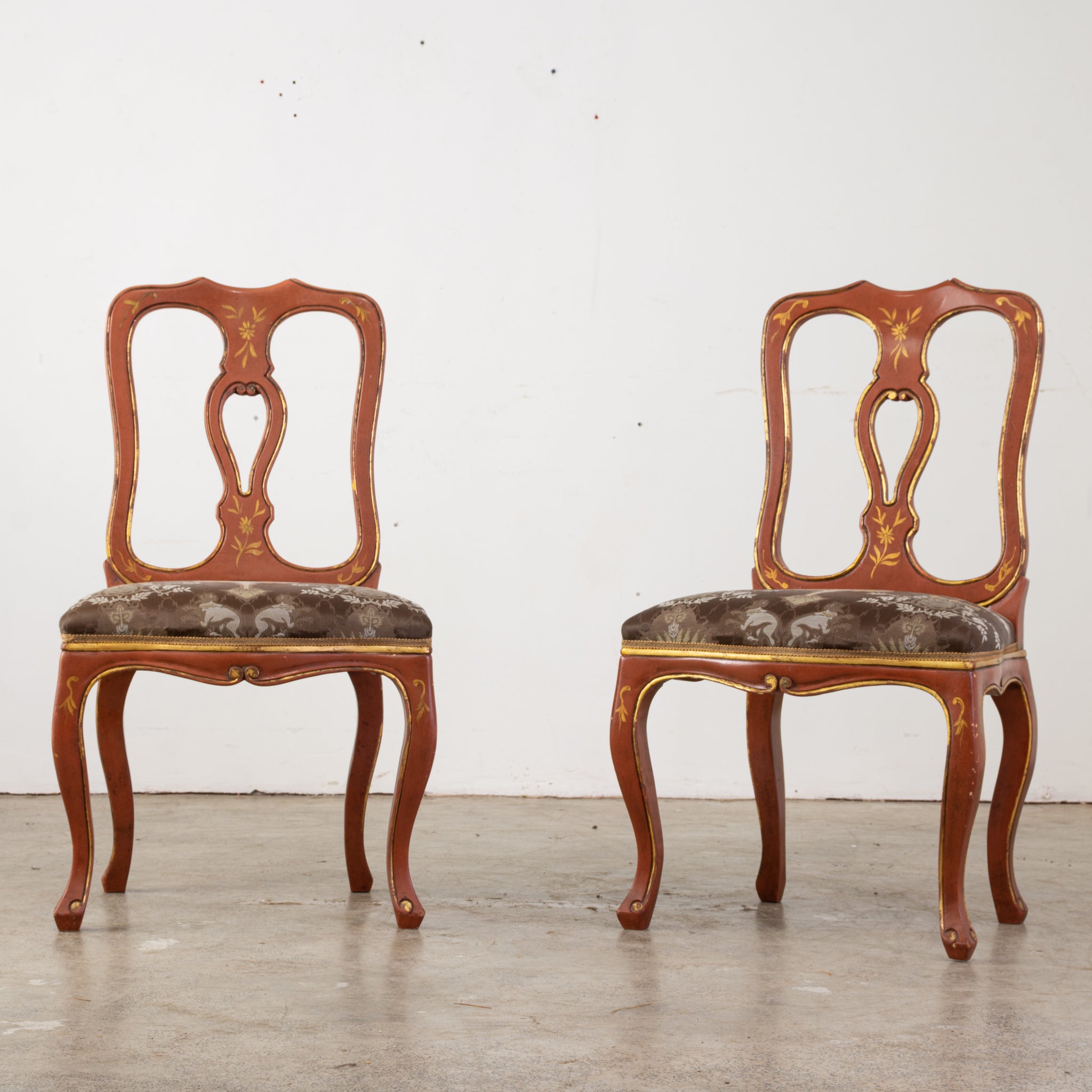 Pre-owned & Refurbished MID CENTURY - Pair of Italian Red Venetian Lacquer Side Chairs | Collecte