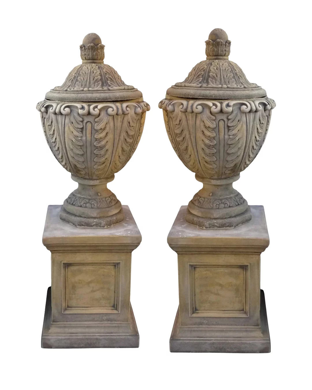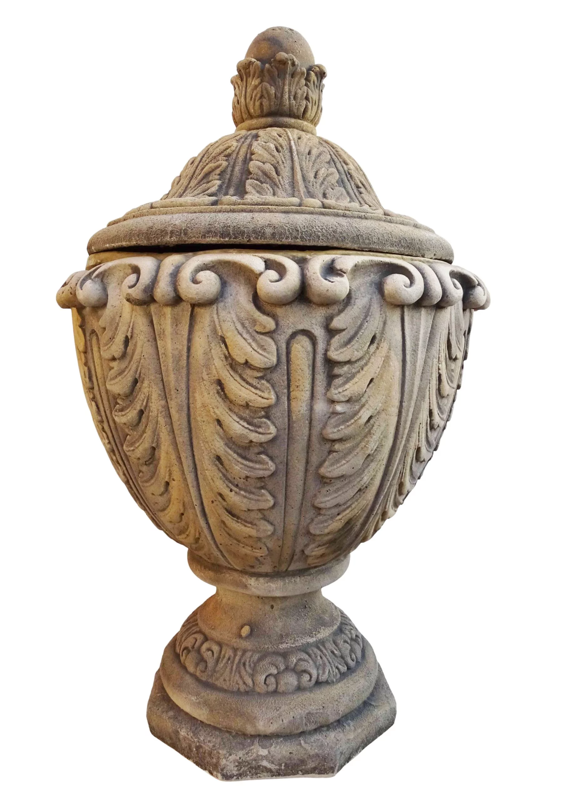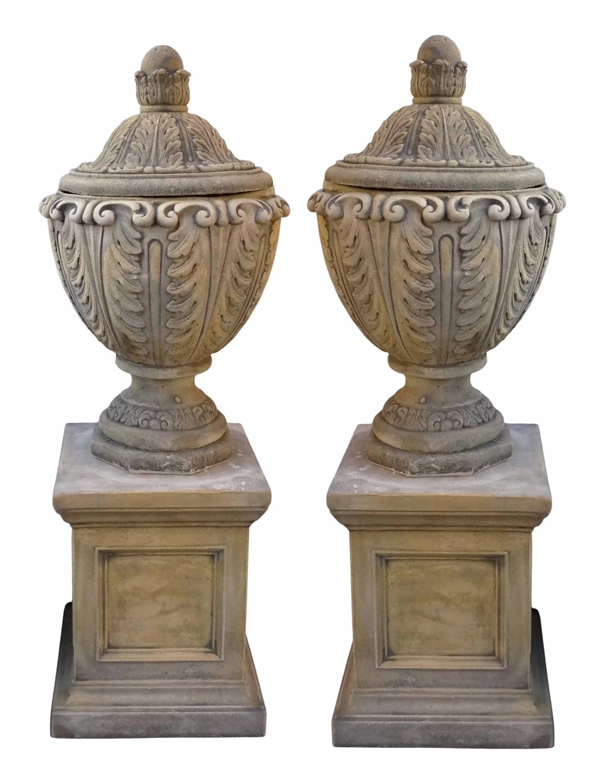 Pre-owned & Refurbished ANTIQUE - Pair of Neoclassical Cast Limestone Lidded Garden Urns | Collecte