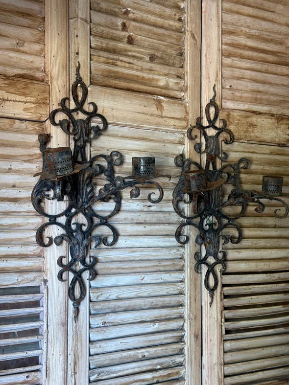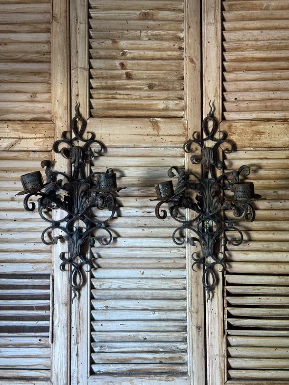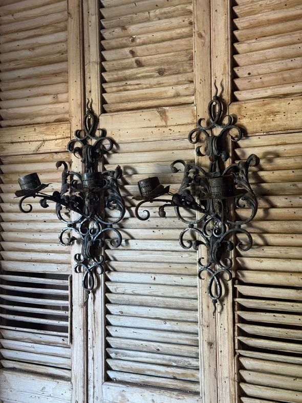 Pre-owned & Refurbished VINTAGE - Pair of Vintage Wrought Iron Wall Sconces | Collecte