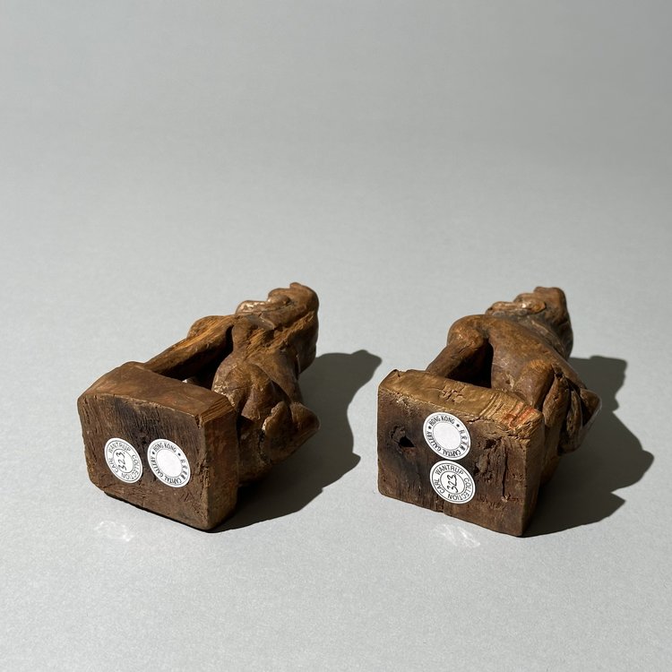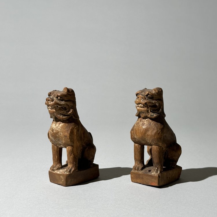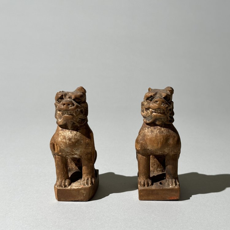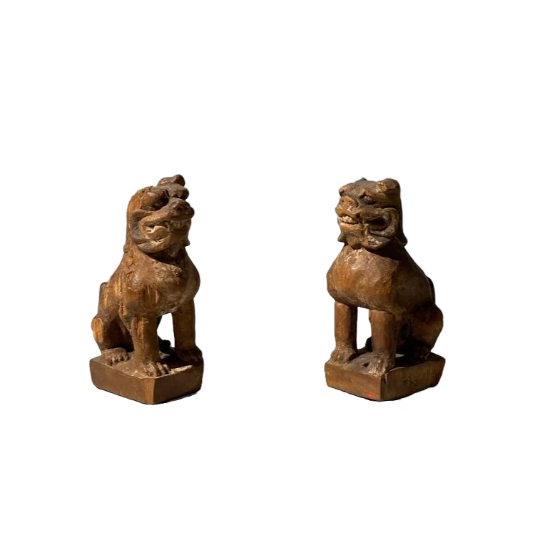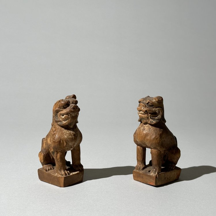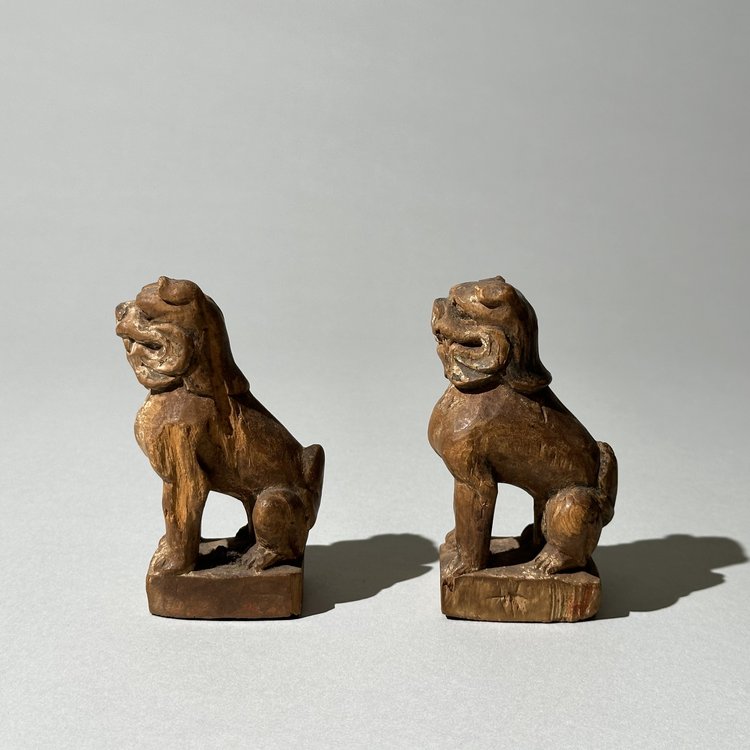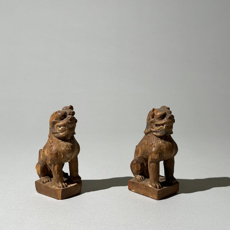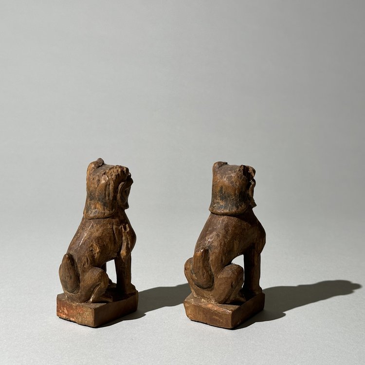 Pre-owned & Refurbished ANTIQUE - Pair of Wood Sculptures of Buddhist Guardian Lions | Collecte