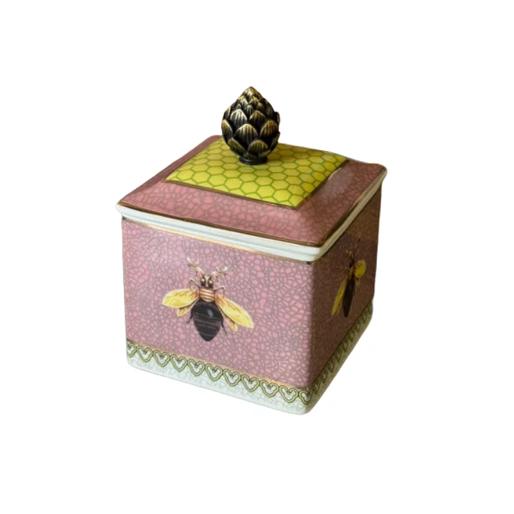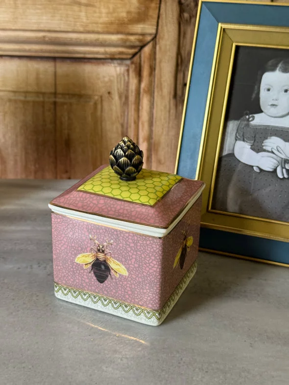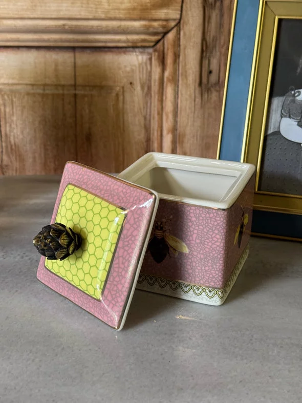 Pre-owned & Refurbished Contemporary - Pink and Green Bee Lidded Trinket Box | Collecte