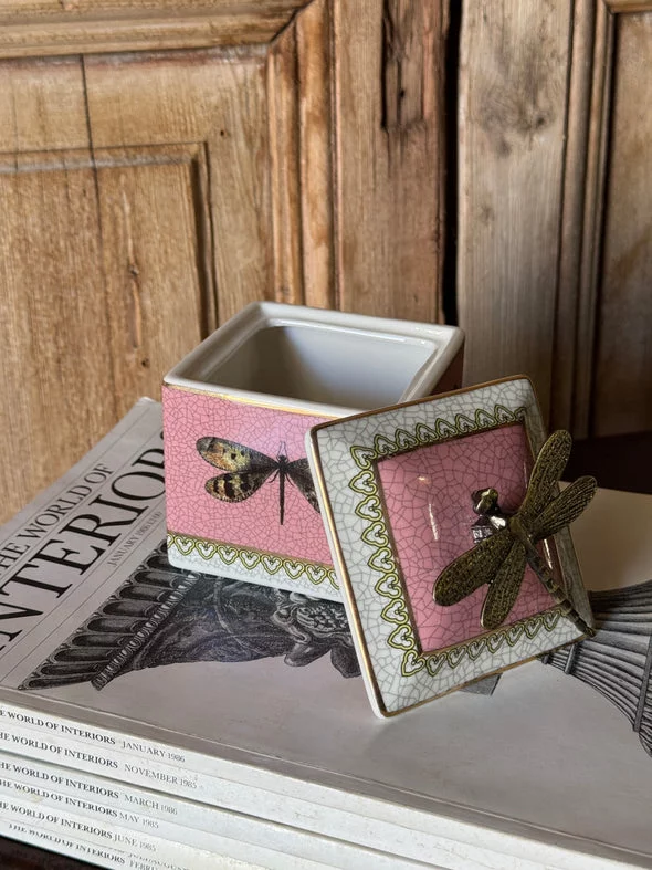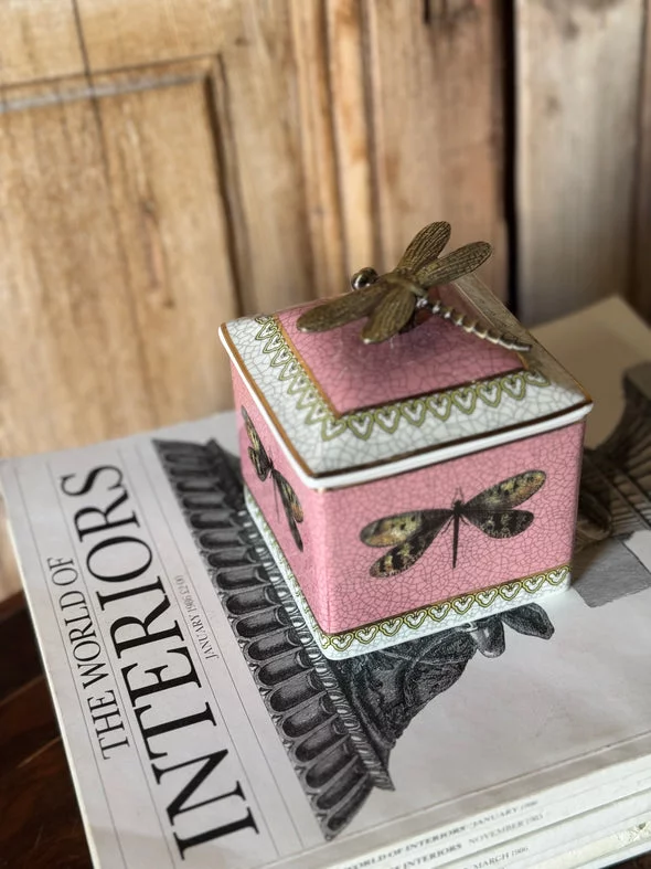 Pre-owned & Refurbished Contemporary - Pink Dragonfly Ceramic Trinket Box | Collecte