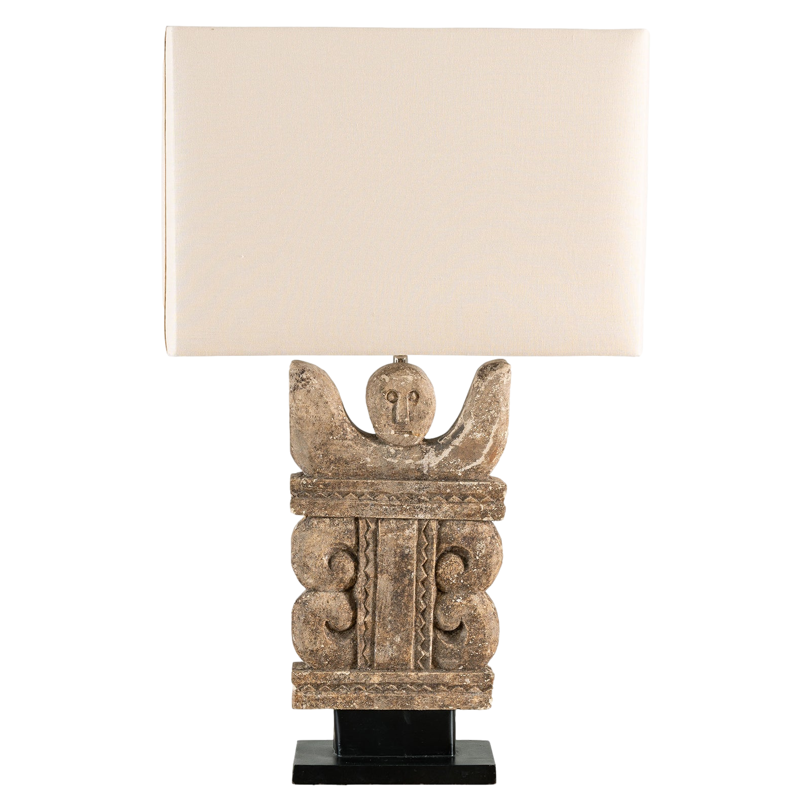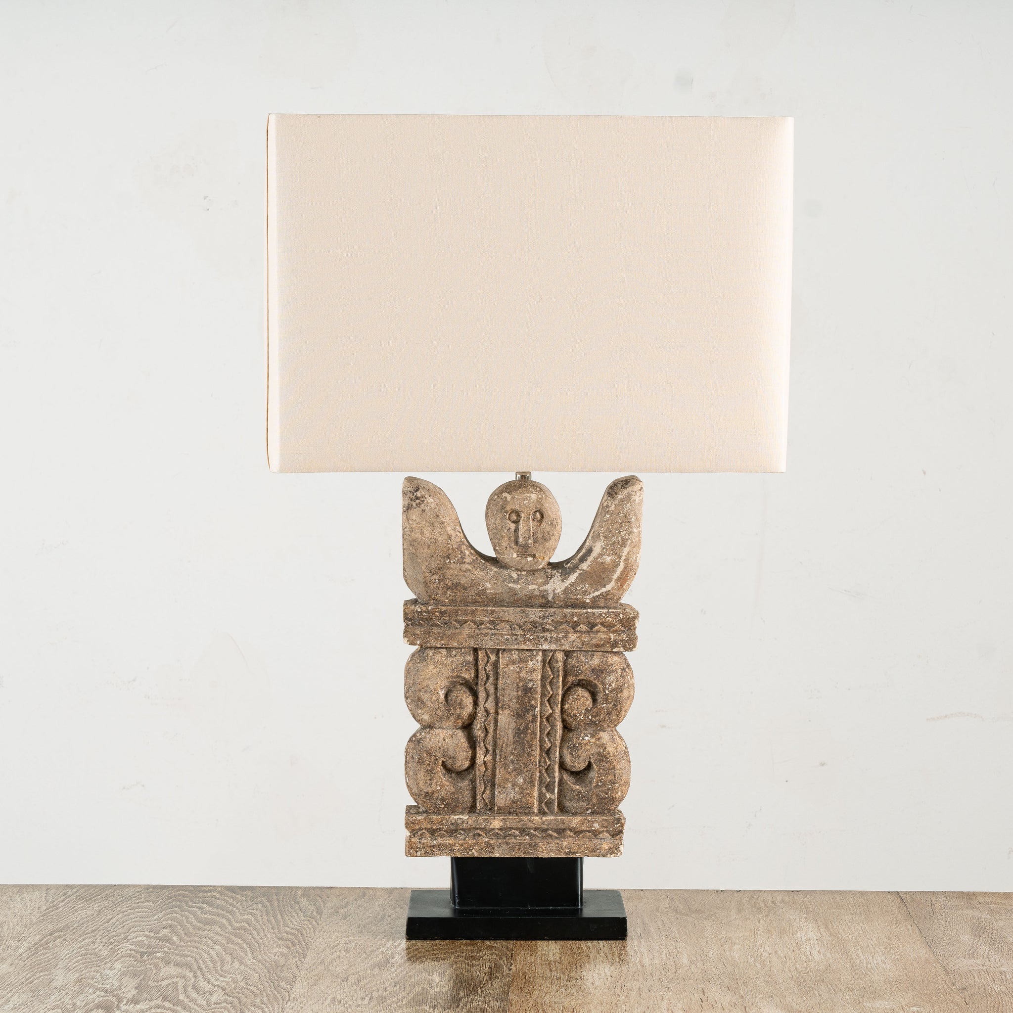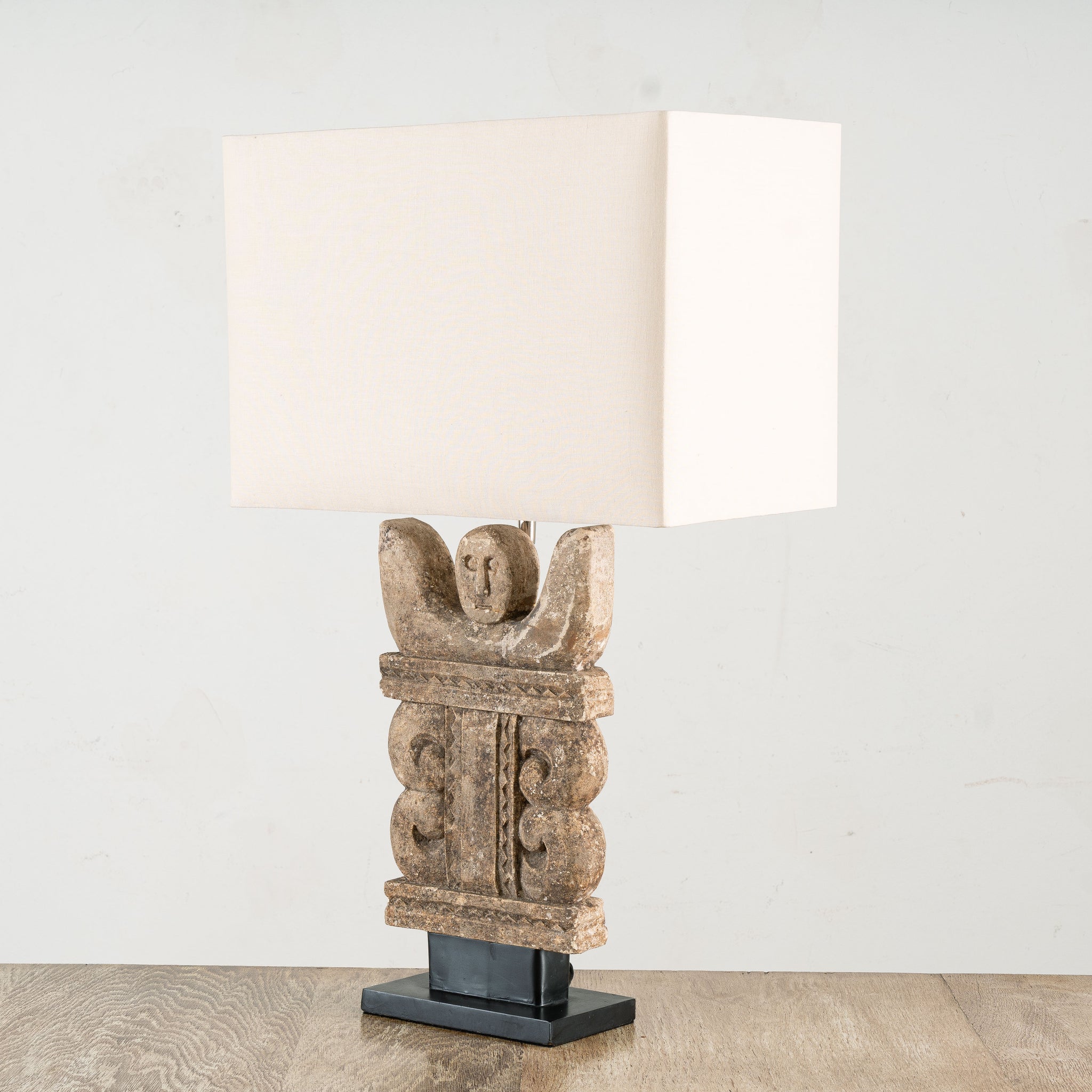 Pre-owned & Refurbished Contemporary - Primitive Carved Stone Table Lamp | Collecte