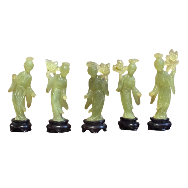 Pre-owned & Refurbished VINTAGE - Set of 5 Chinese Carved Green Stone Courtesans | Collecte