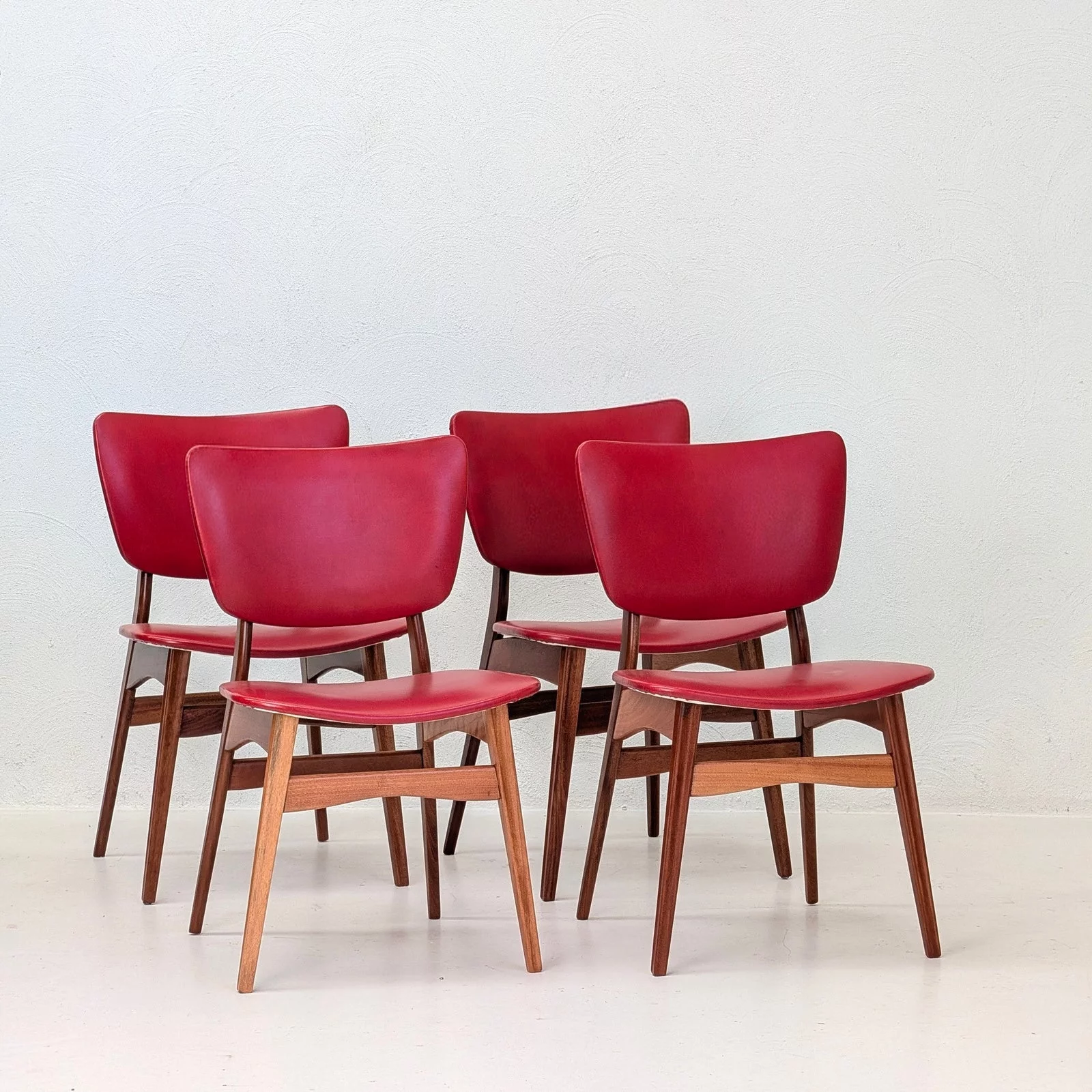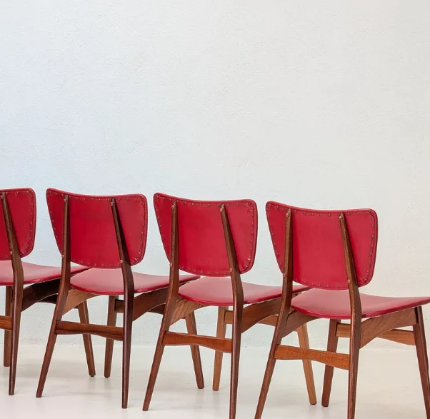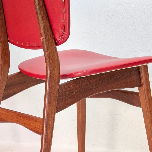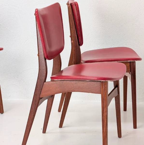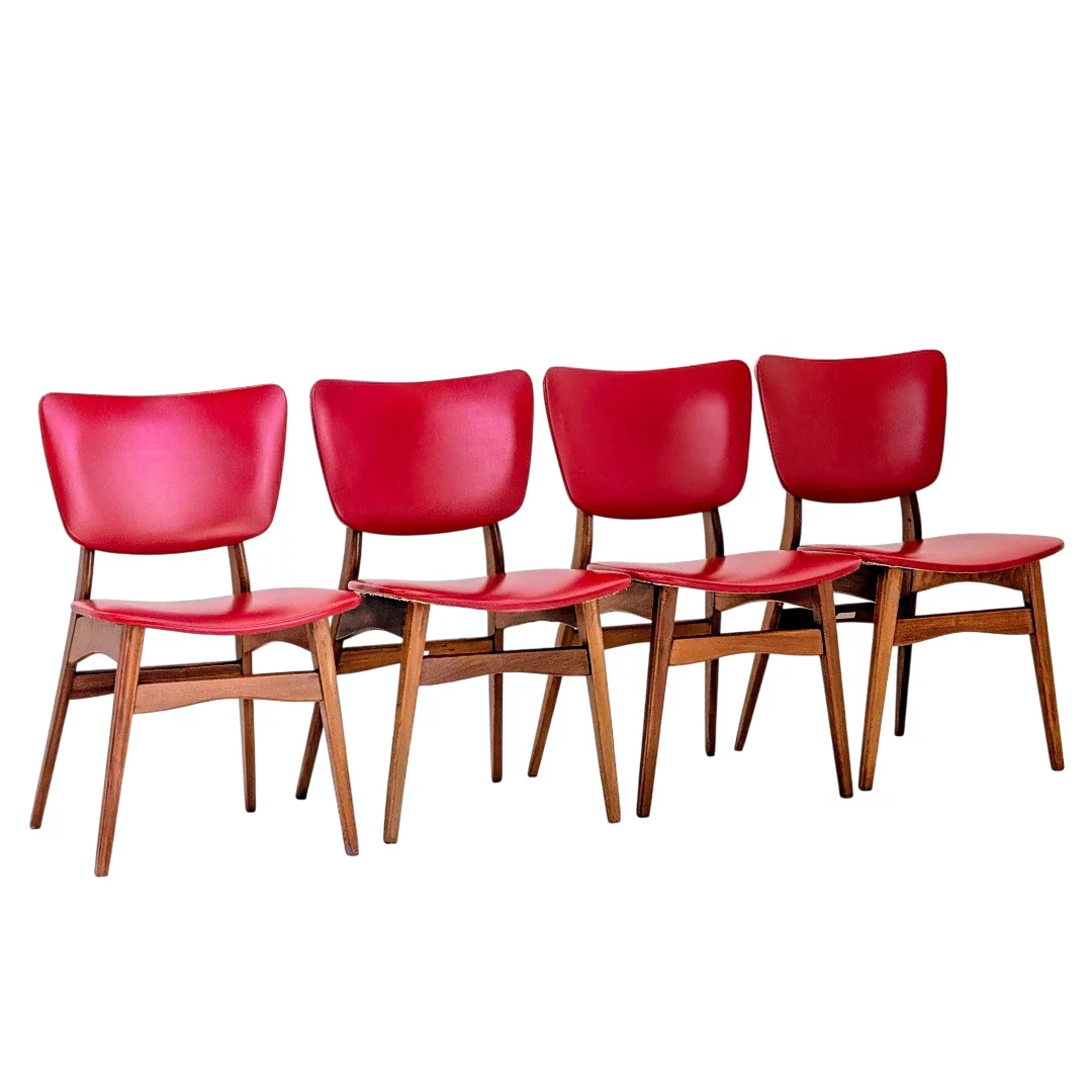 Pre-owned & Refurbished FLER FURNITURE - Set of Four Original Red Vinyl Dining Chairs by Fred Lowen and Ernest Rodeck | Collecte