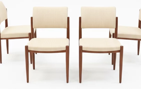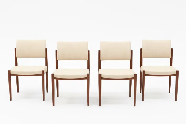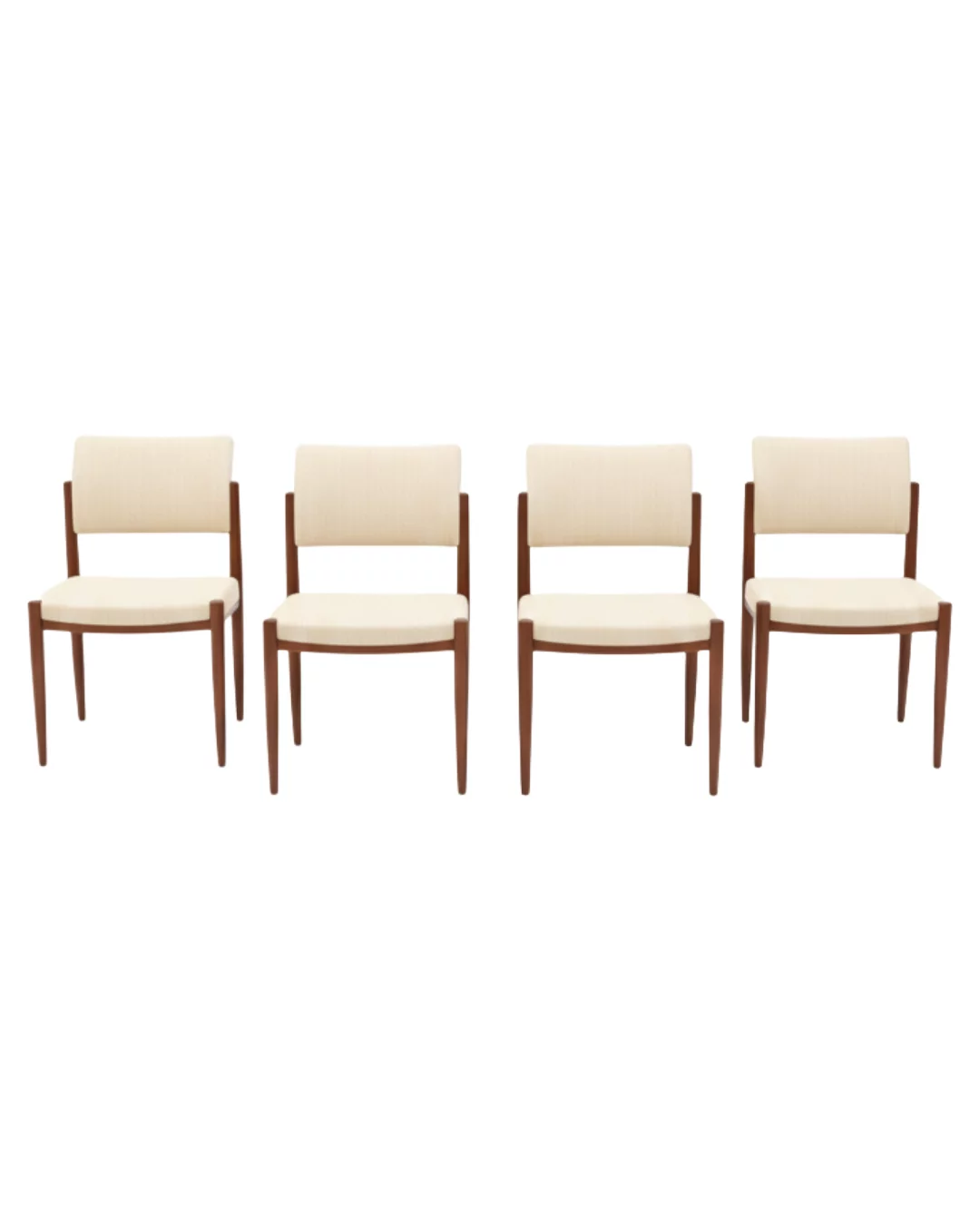 Pre-owned & Refurbished CHISWELL - Set of Four Nordic Cream Vinyl Teak Chairs | Collecte