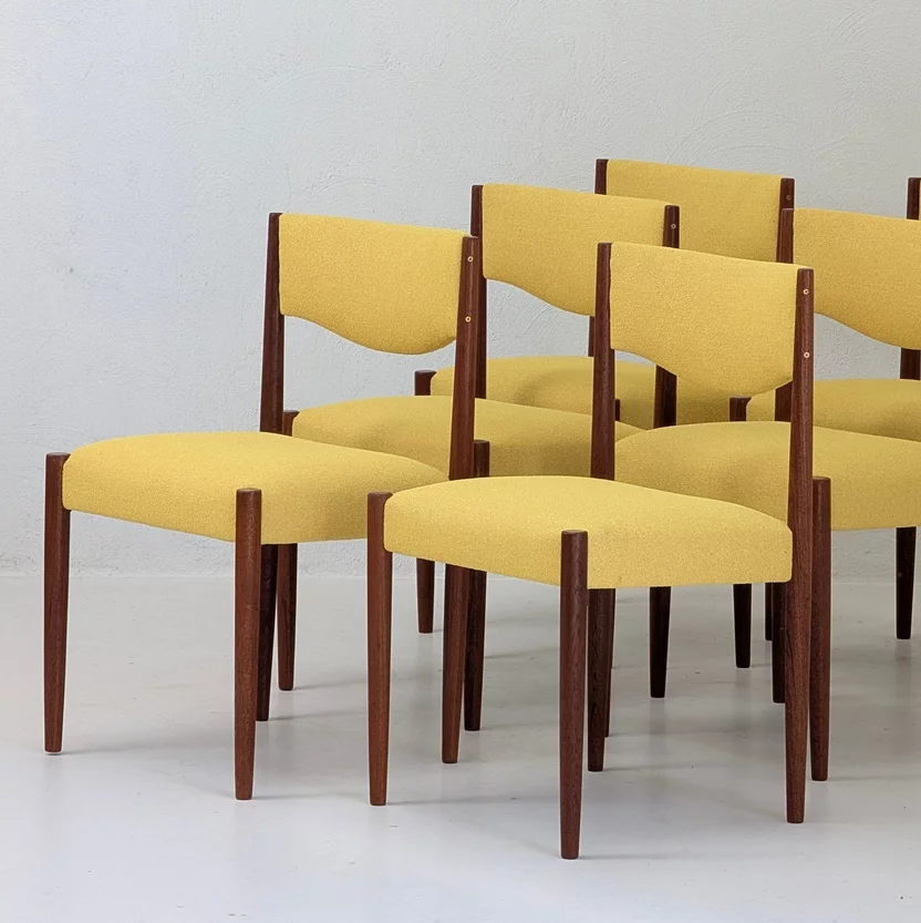 Pre-owned & Refurbished PARKER FURNITURE - Set of Six Yellow Fabric Model 62 Dining Chairs | Collecte