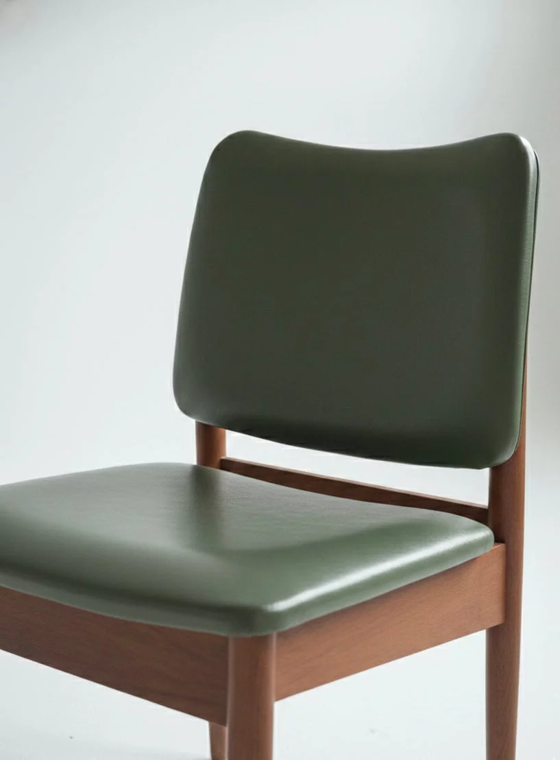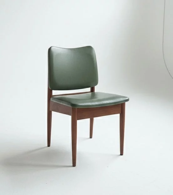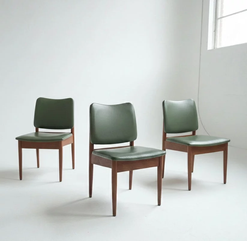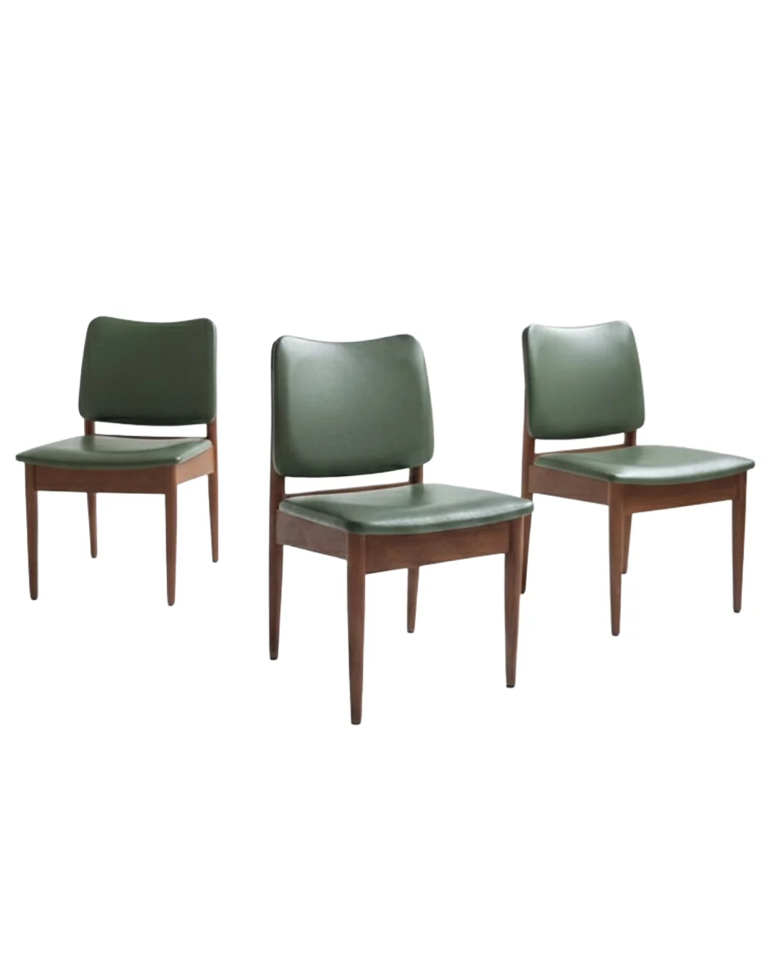 Pre-owned & Refurbished CHISWELL - Set of Three Green Vinyl Teak Chairs | Collecte
