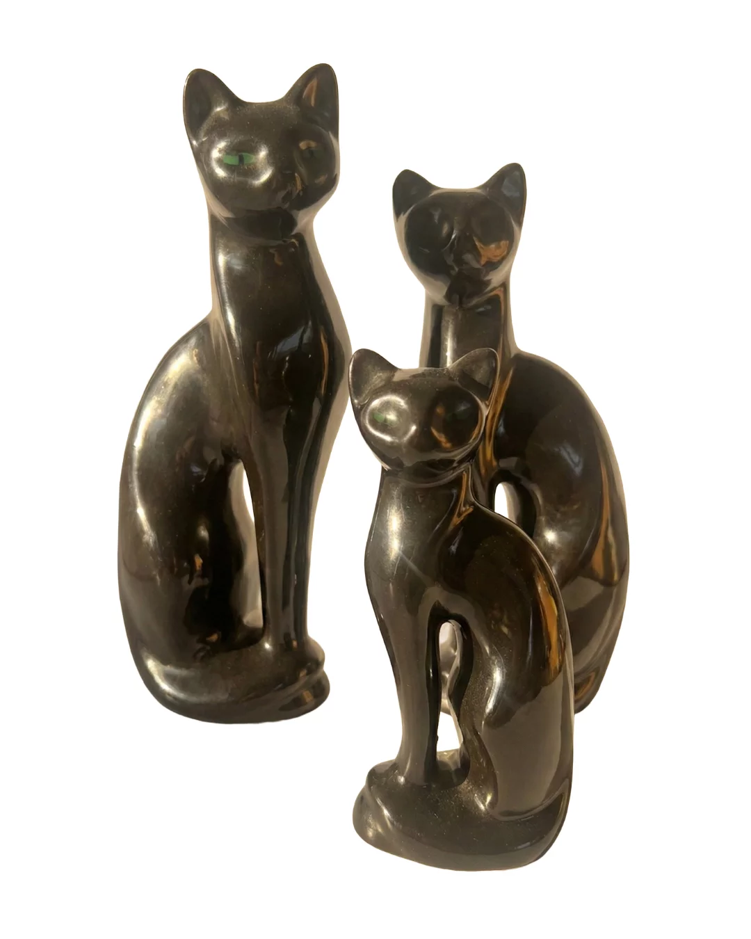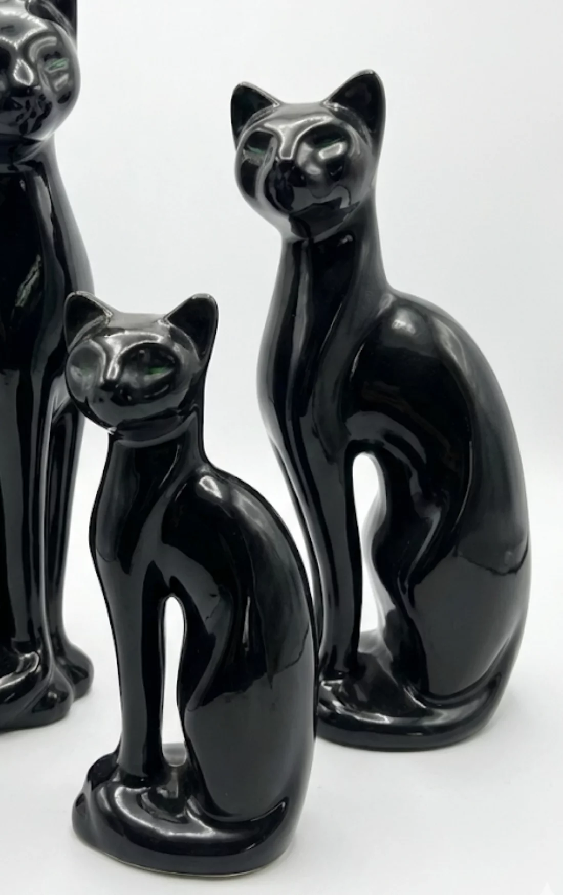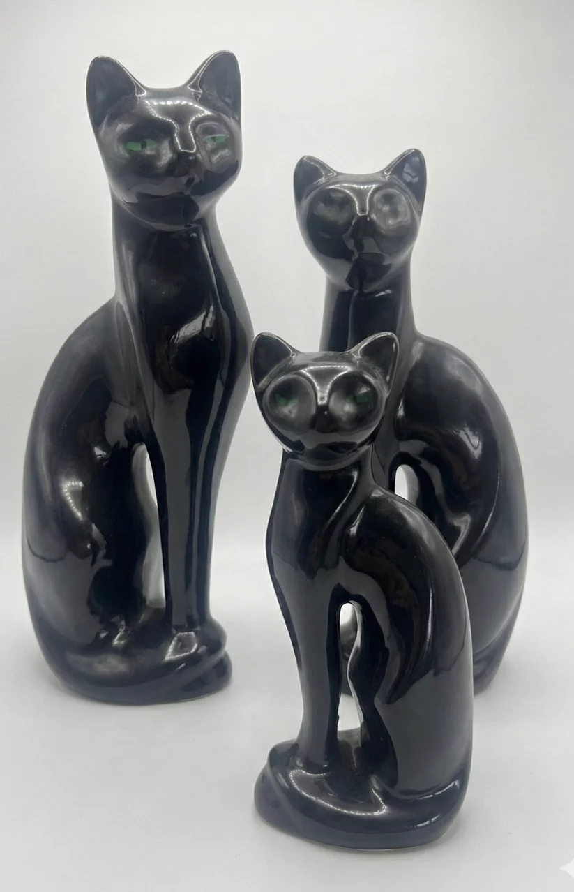 Pre-owned & Refurbished MID CENTURY - Set of Three Japanese Ceramic Cat Family Black with Green Eyes | Collecte