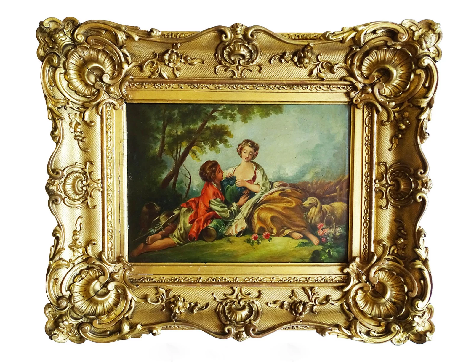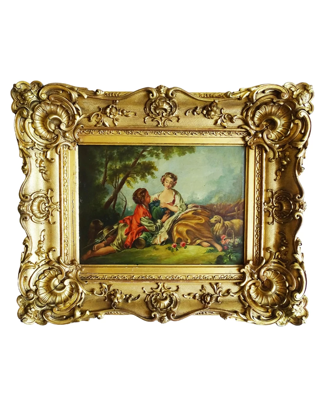 Pre-owned & Refurbished ANTIQUE - The Lovers French Oil on Board in Ornate Frame | Collecte