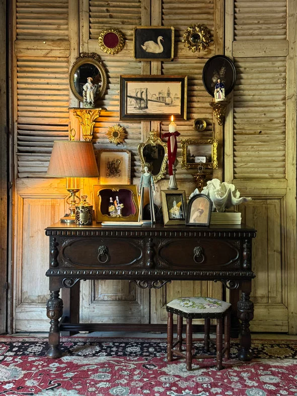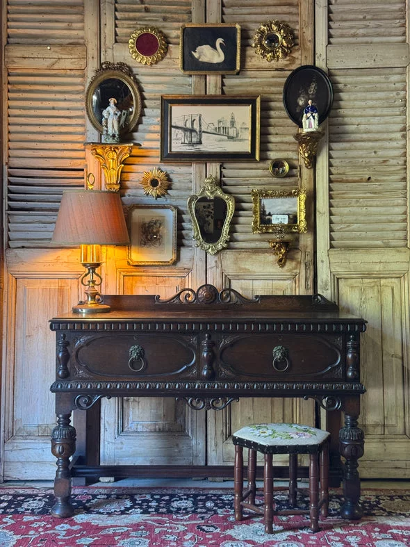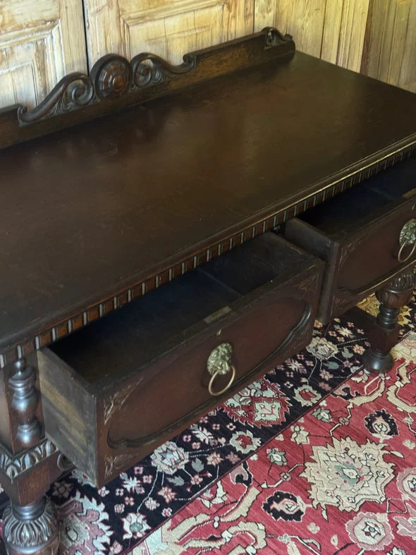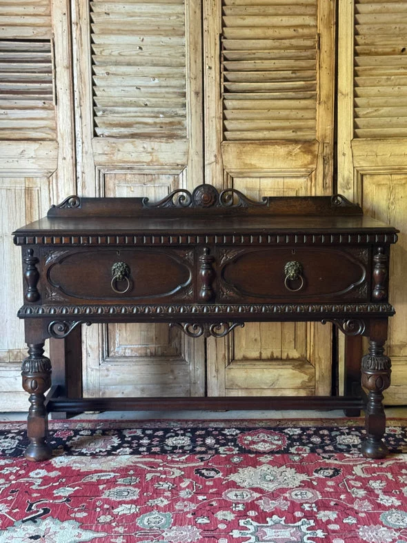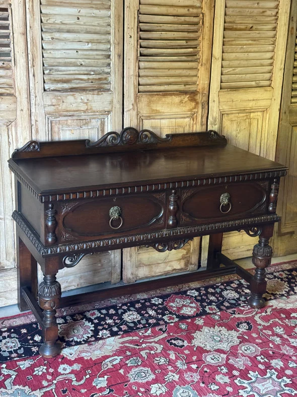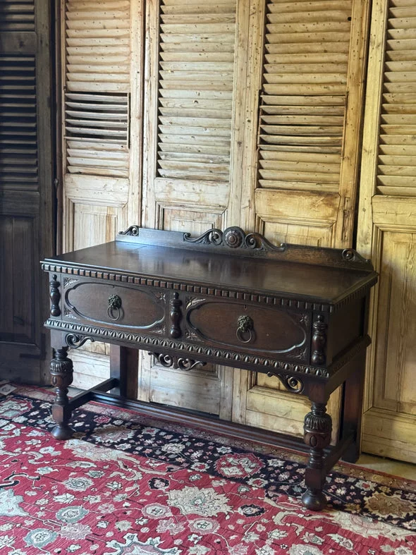 Pre-owned & Refurbished VINTAGE - Tudor Revival Console Table with 2 Drawers | Collecte