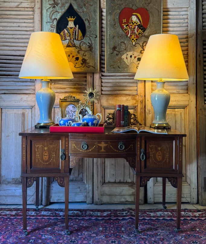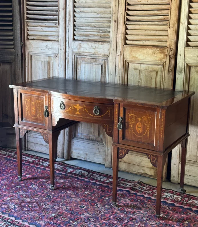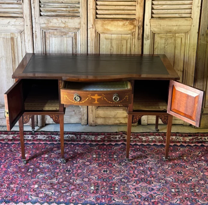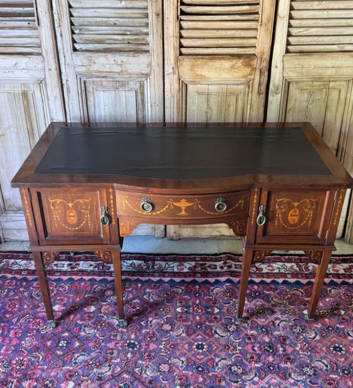 Pre-owned & Refurbished VINTAGE - 1920s Mahogany Inlaid Desk With Leather Top | Collecte