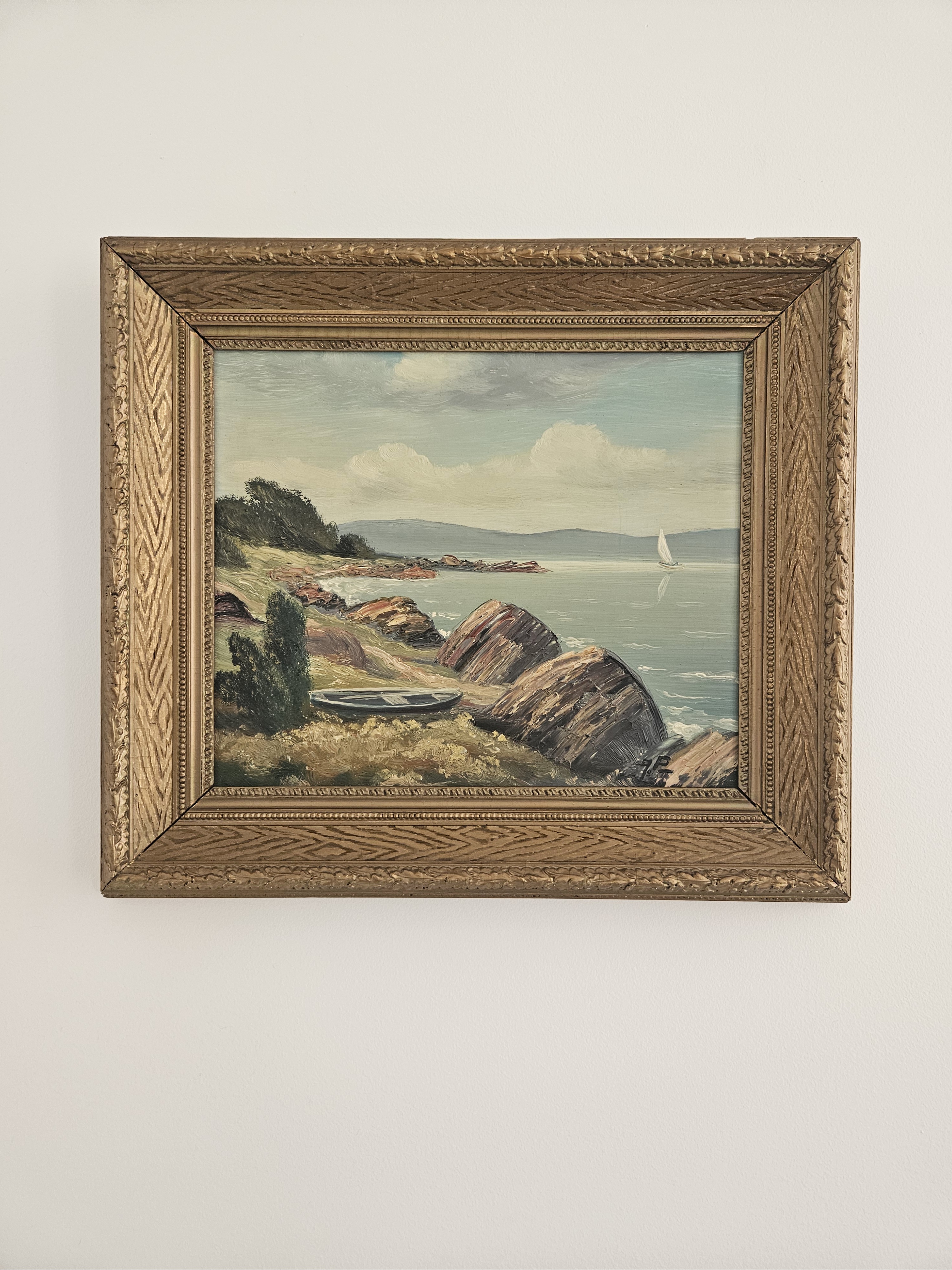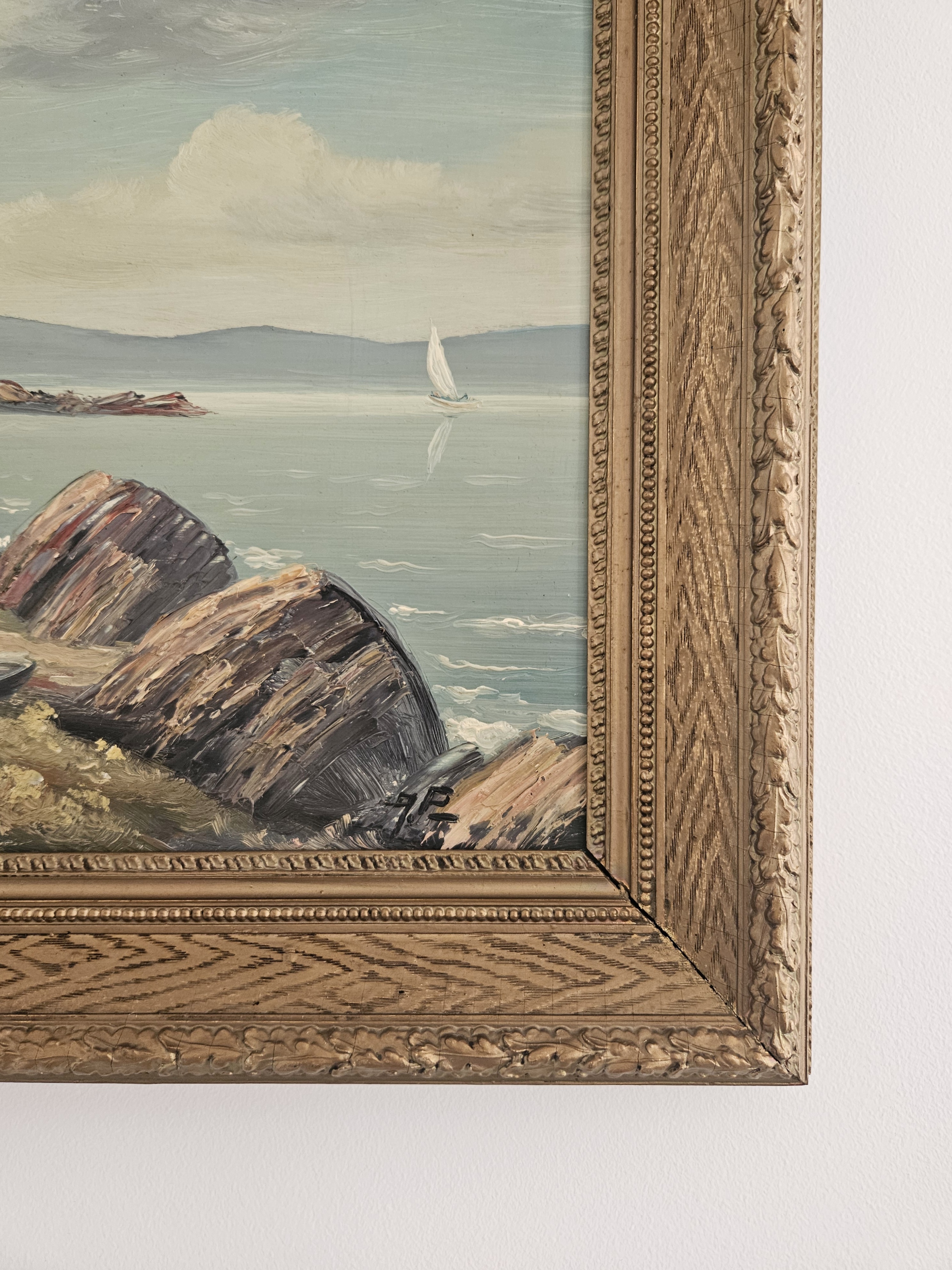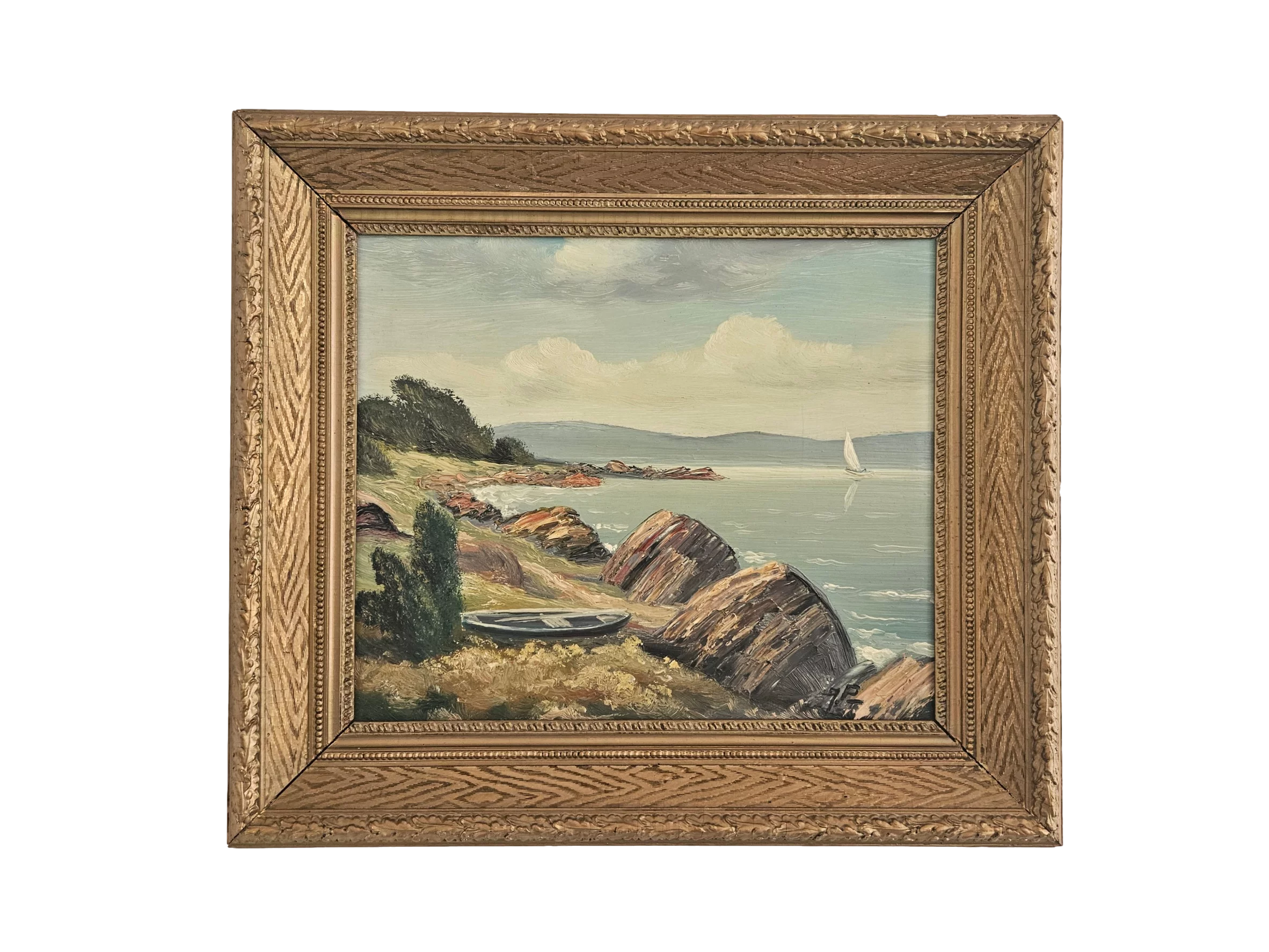 Pre-owned & Refurbished - White Sail - Vintage Oil Painting with Ornate Frame | Collecte