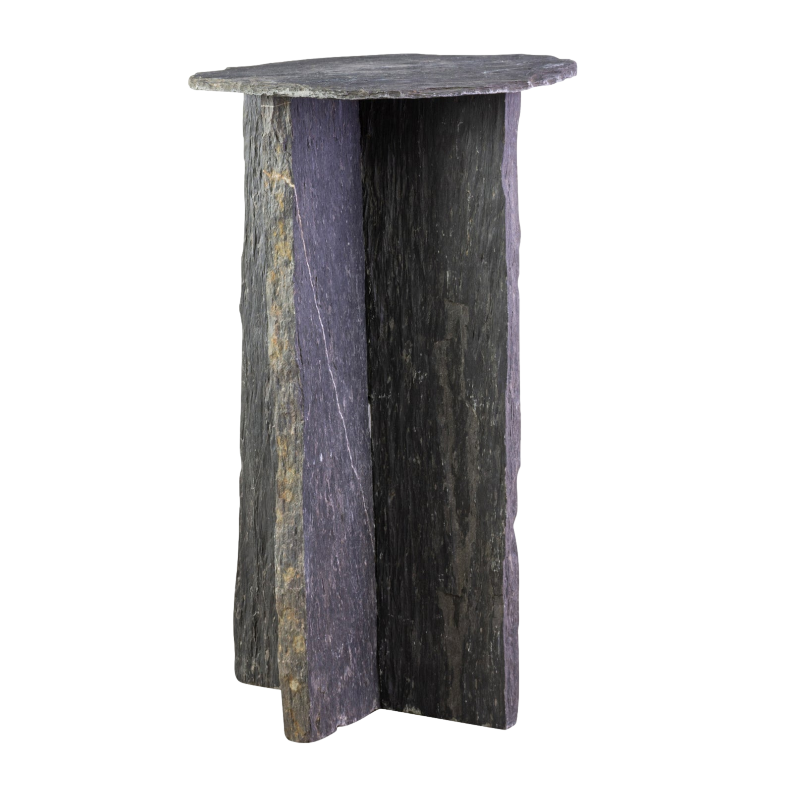Pre-owned & Refurbished Contemporary - Wabi Sabi Slate Topped Pedestal Side Table | Collecte