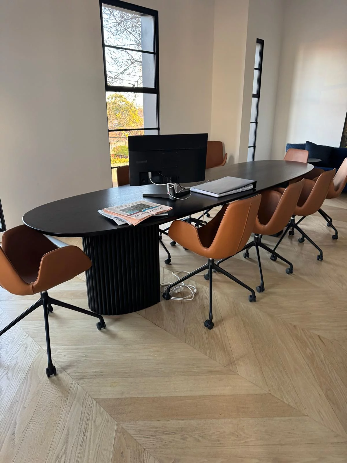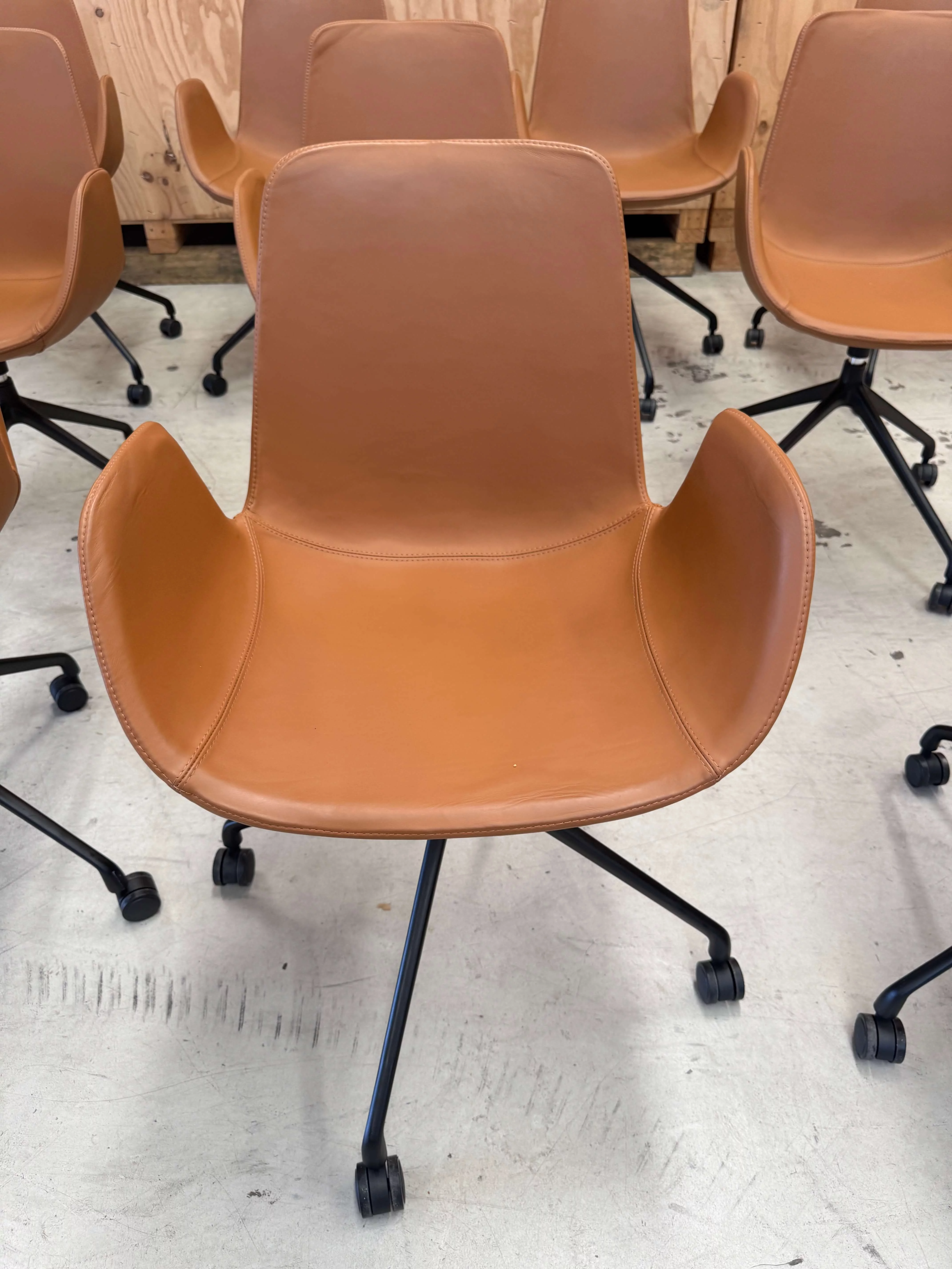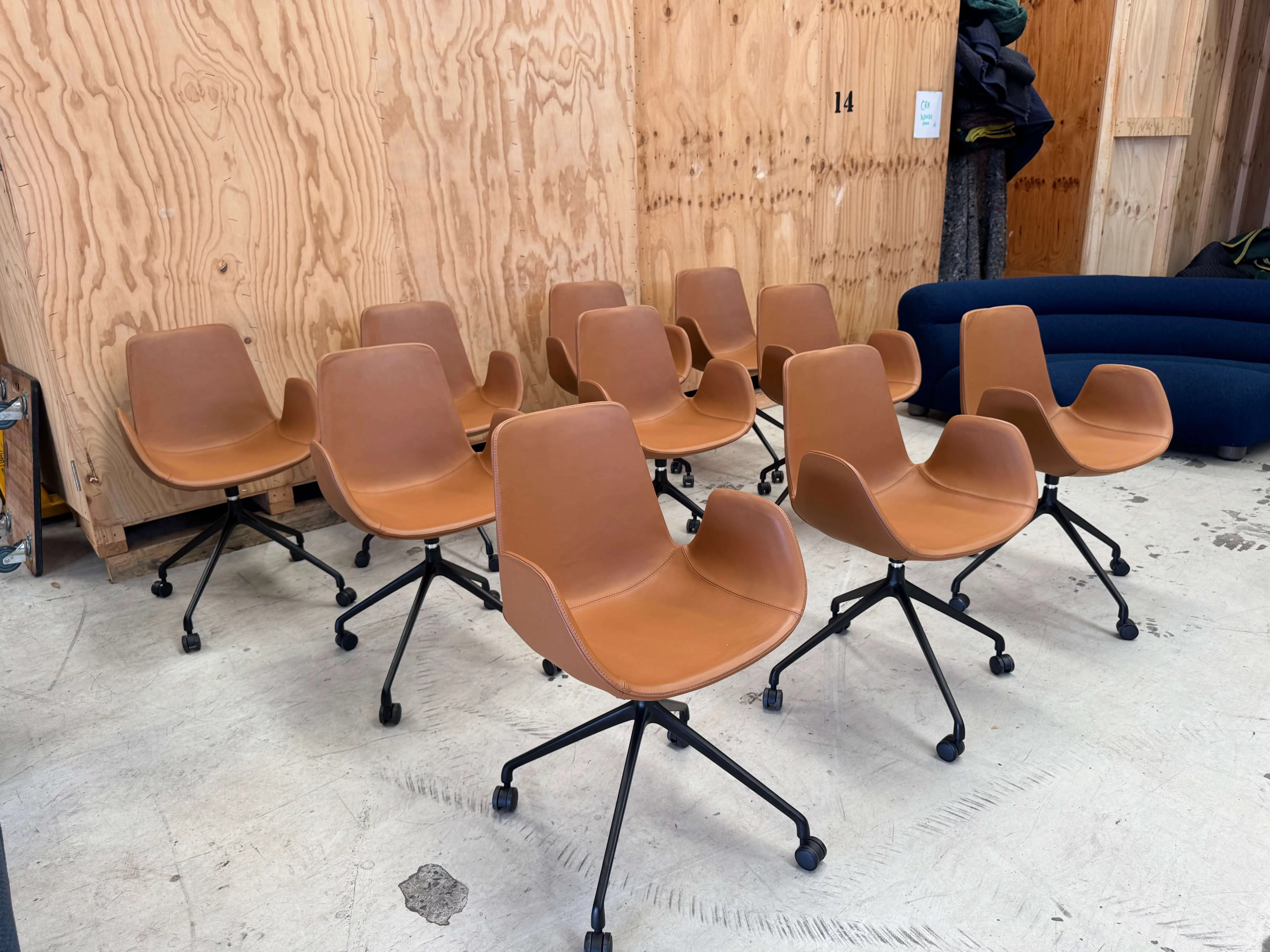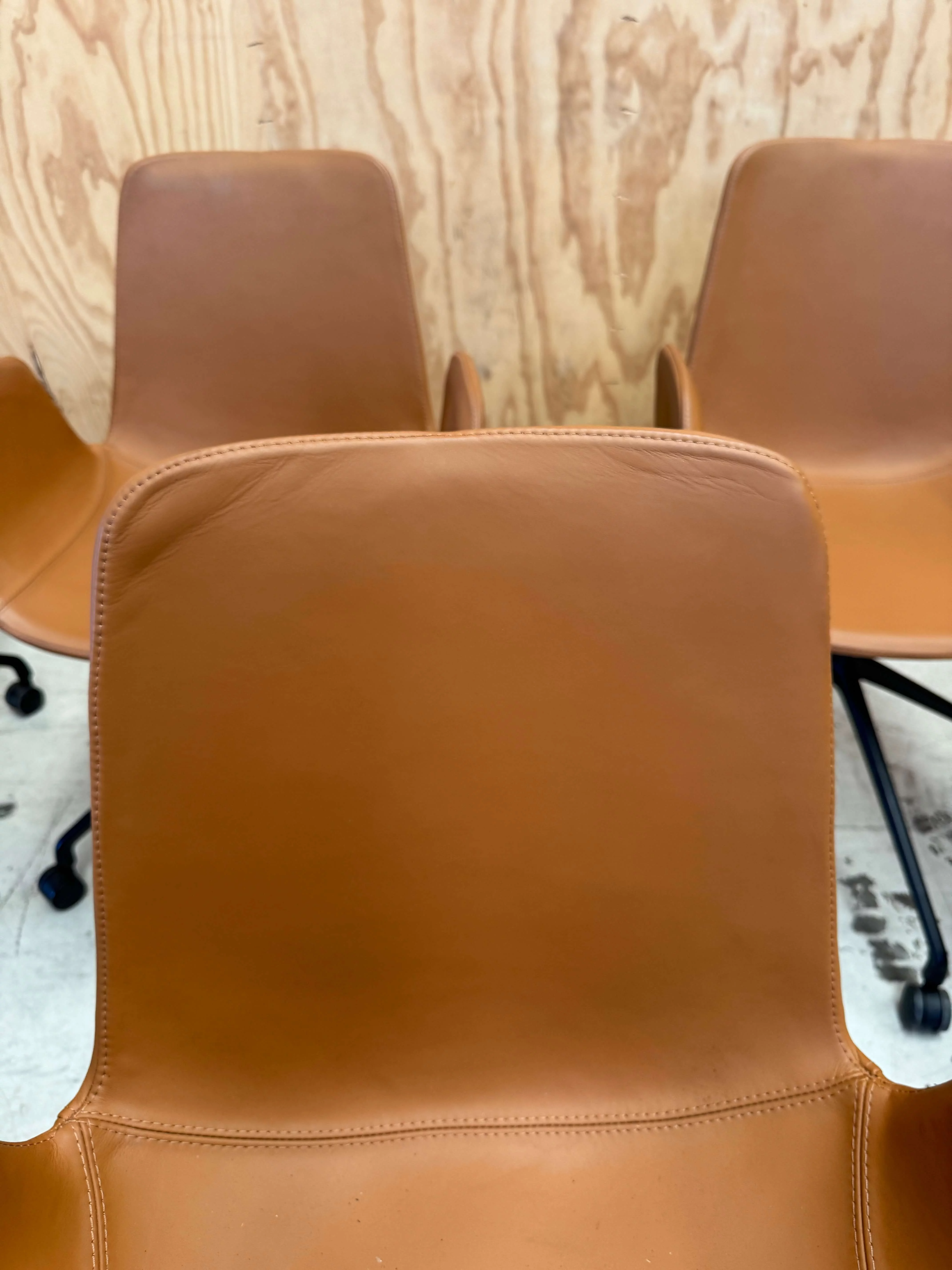Pre-owned & Refurbished ZUSTER - Set of 10 Cloud Tan Leather Chair with Castors | Collecte