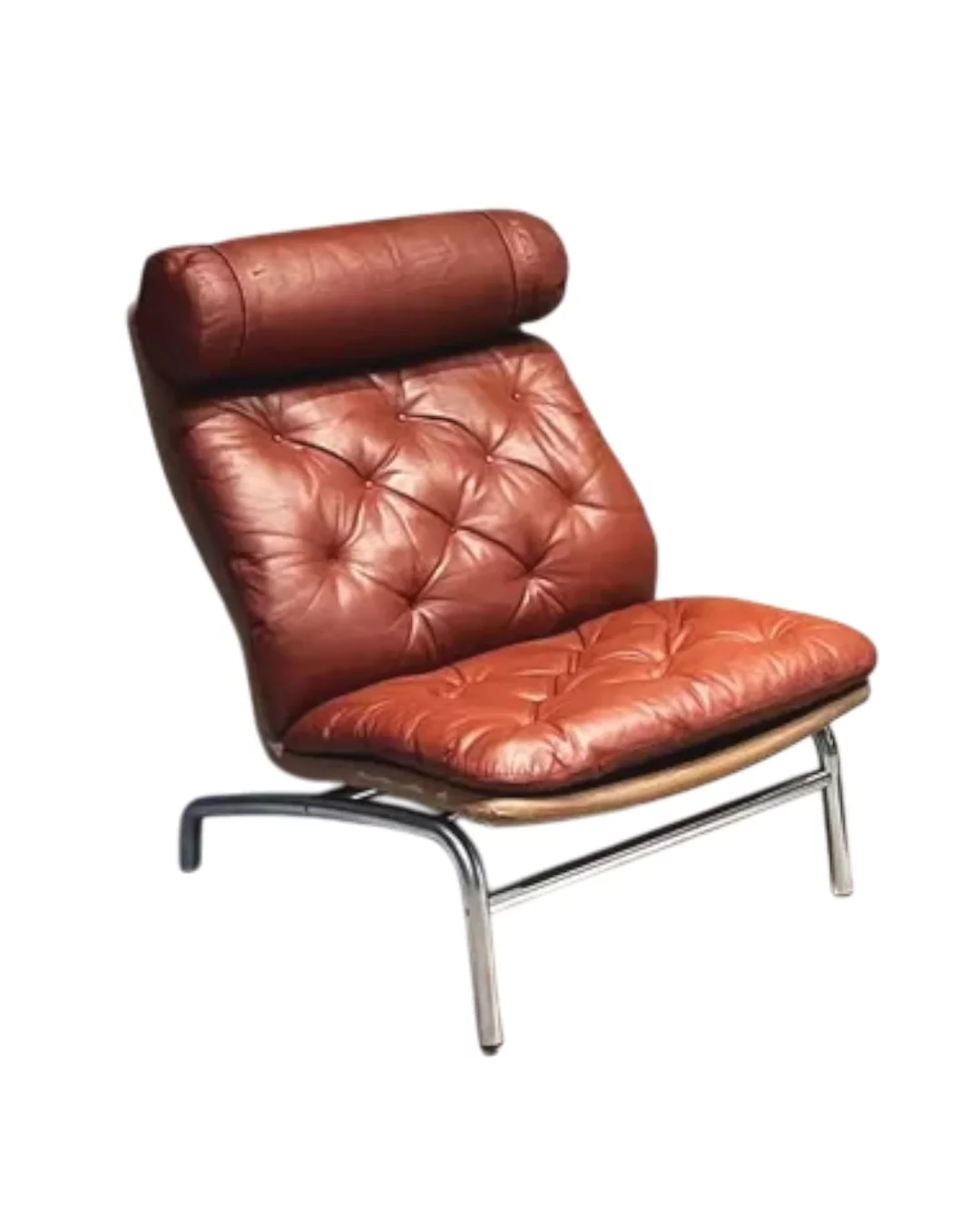 Pre-owned & Refurbished ERIK JORGENSEN - Danish Leather and Chrome Lounge Chair by Arne Vodder | Collecte