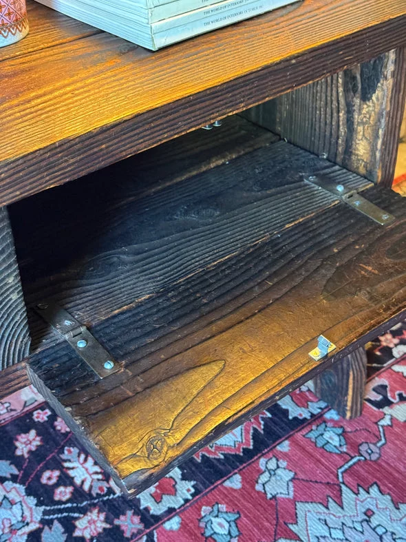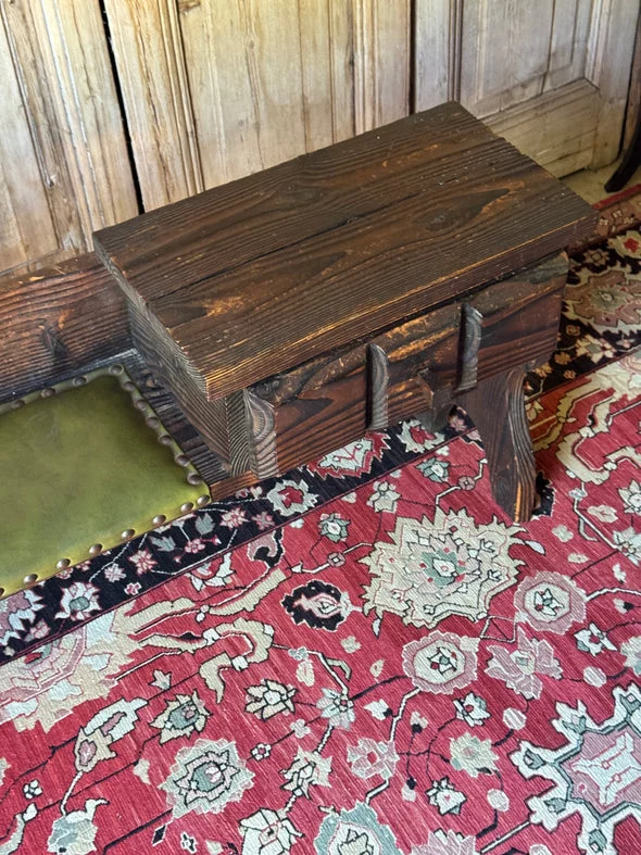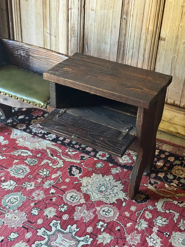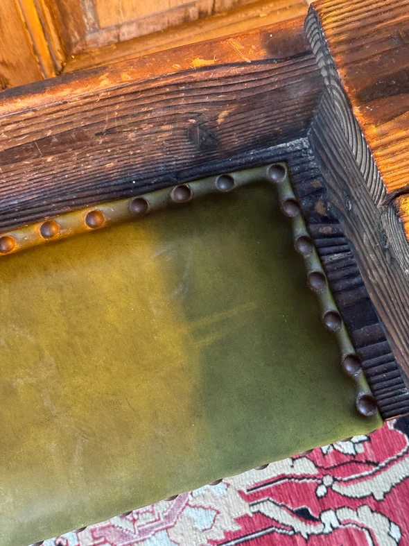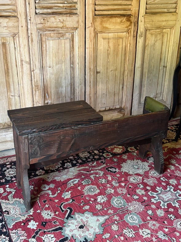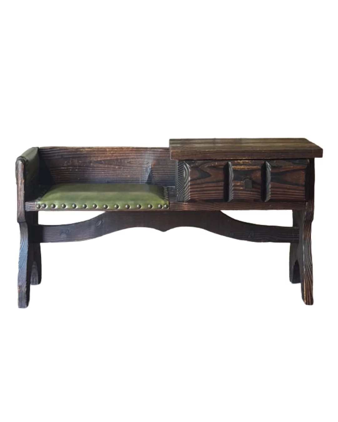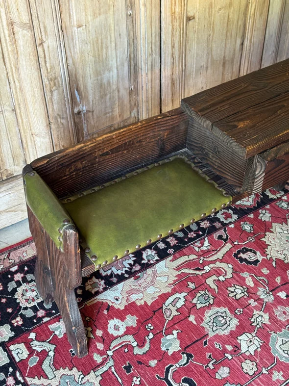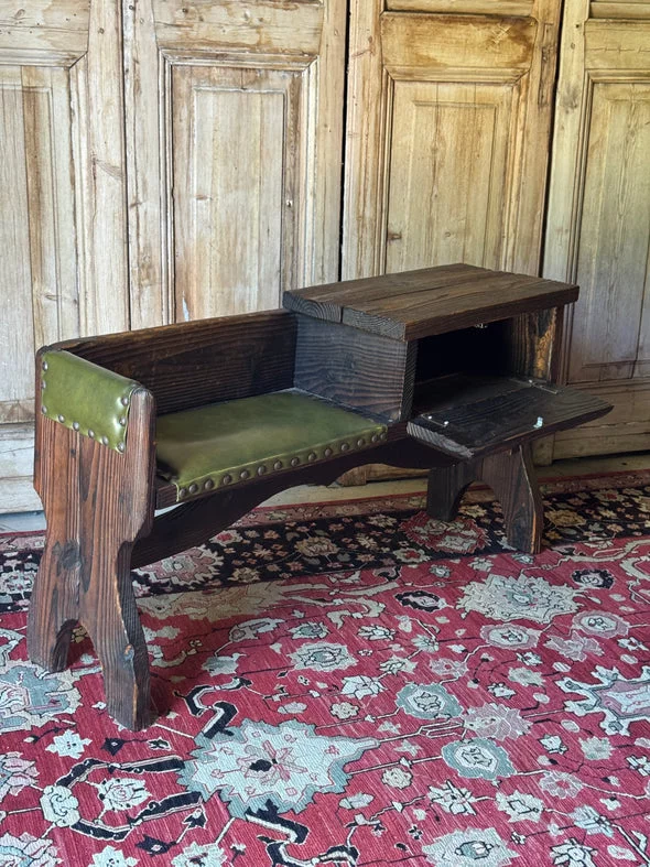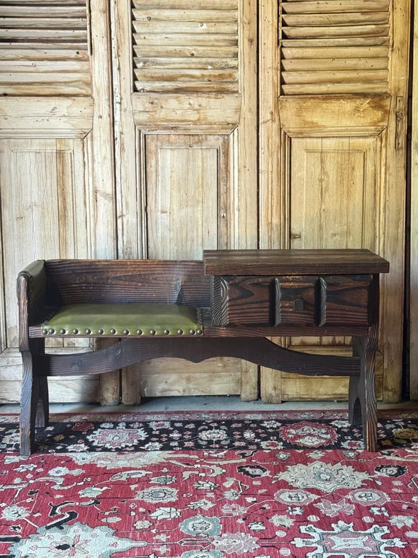 Pre-owned & Refurbished VINTAGE - Danish Rustic Telephone Bench with Green Leather Seat | Collecte