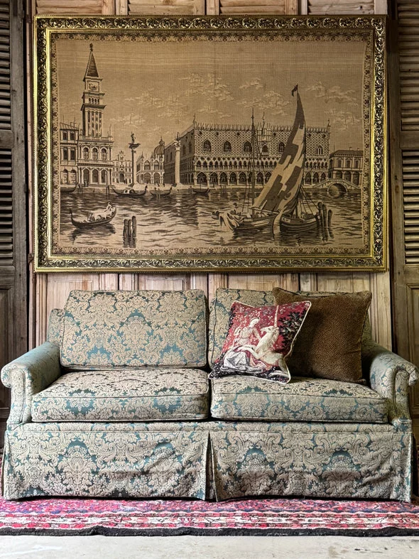 Pre-owned & Refurbished VINTAGE - Green Damask Two Seater Lounge | Collecte