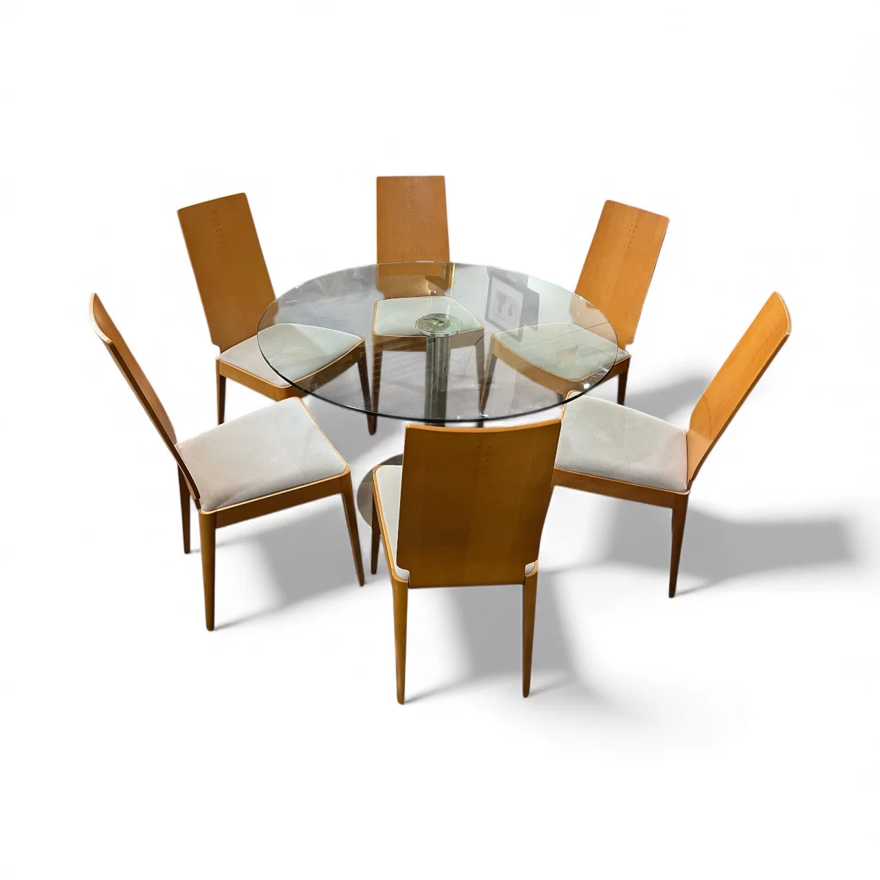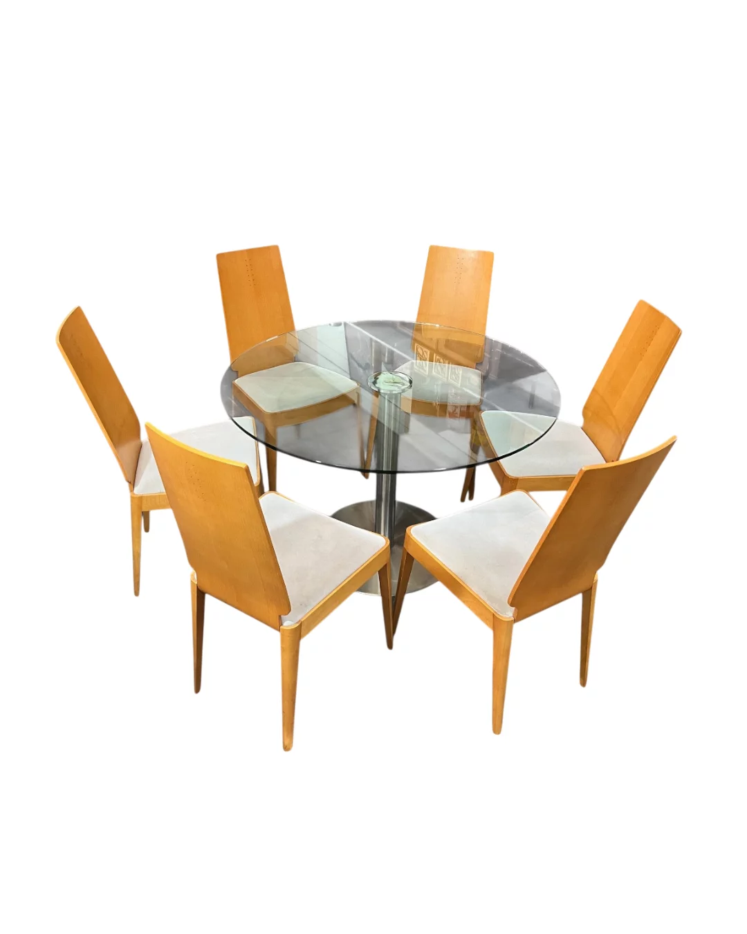 Pre-owned & Refurbished VINTAGE - Vintage Dining Suite Round Glass Table and Beech Chairs 2000s | Collecte